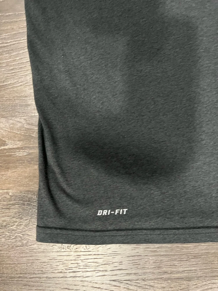 This Nike Dri-Fit Shirt for men is the perfect choice for any active occasion. With a comfortable crew neck and short sleeves, it's made from a lightweight, blended fabric that keeps you cool and dry. The dark gray color is accented with the iconic Nike logo, and the shirt is machine washable for easy care. Ideal for gym and cross training, crossfit, running and jogging, this shirt is an athletic fit that will move with you. It's made of polyester and is designed for fall, spring, and summer seasons. The pullover style and band collar add to the overall look and feel of the shirt. This Nike Dri-Fit Shirt is a must-have for any sports enthusiast.