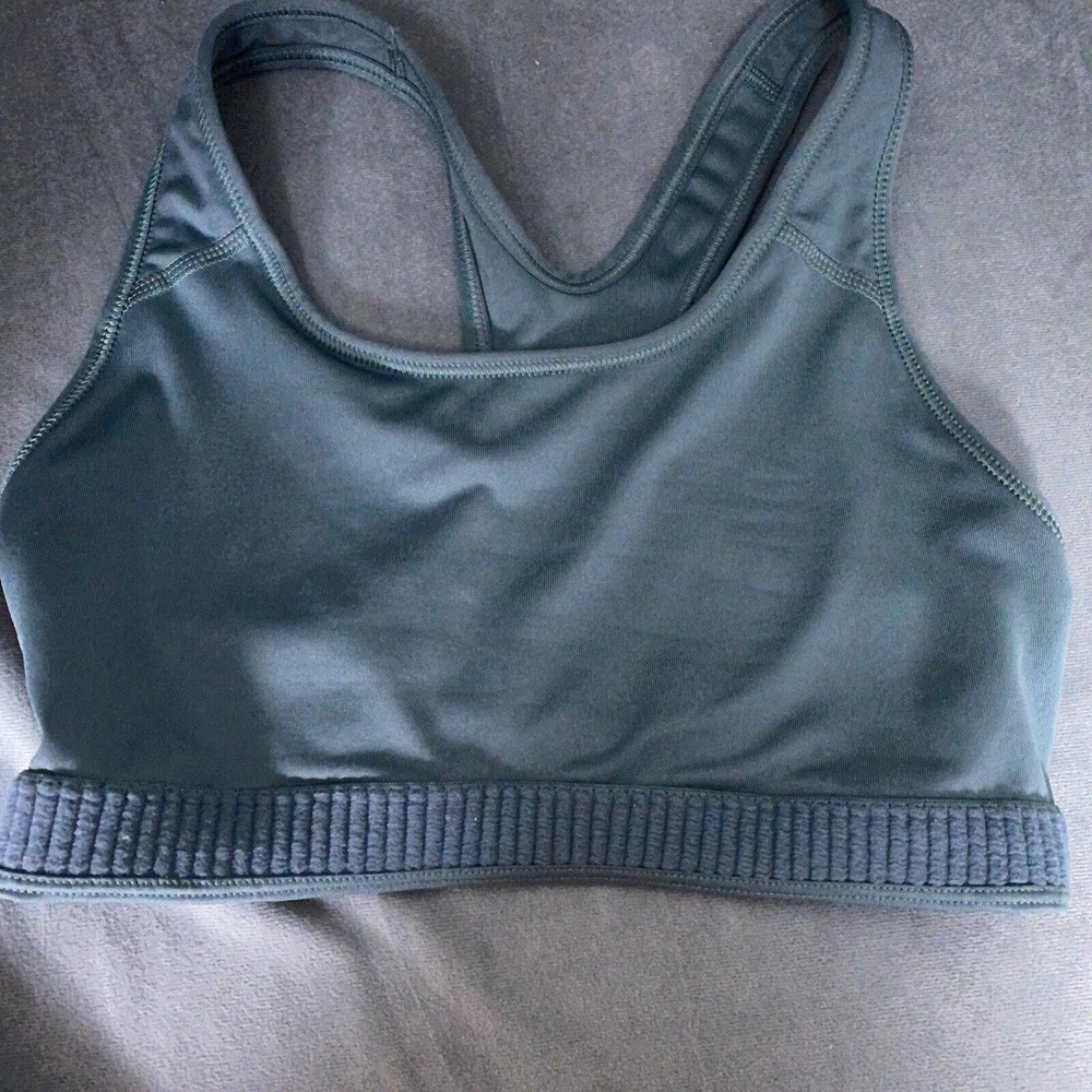 Listed is a Nike Dri-Fit sports bra, pullover, unlined, dark sage green with white Swoosh logo on front. Size XS. Preowned, some slight discoloration at underarms, otherwise good condition, please be sure to see all photos, sold as-is. Thank you for looking!