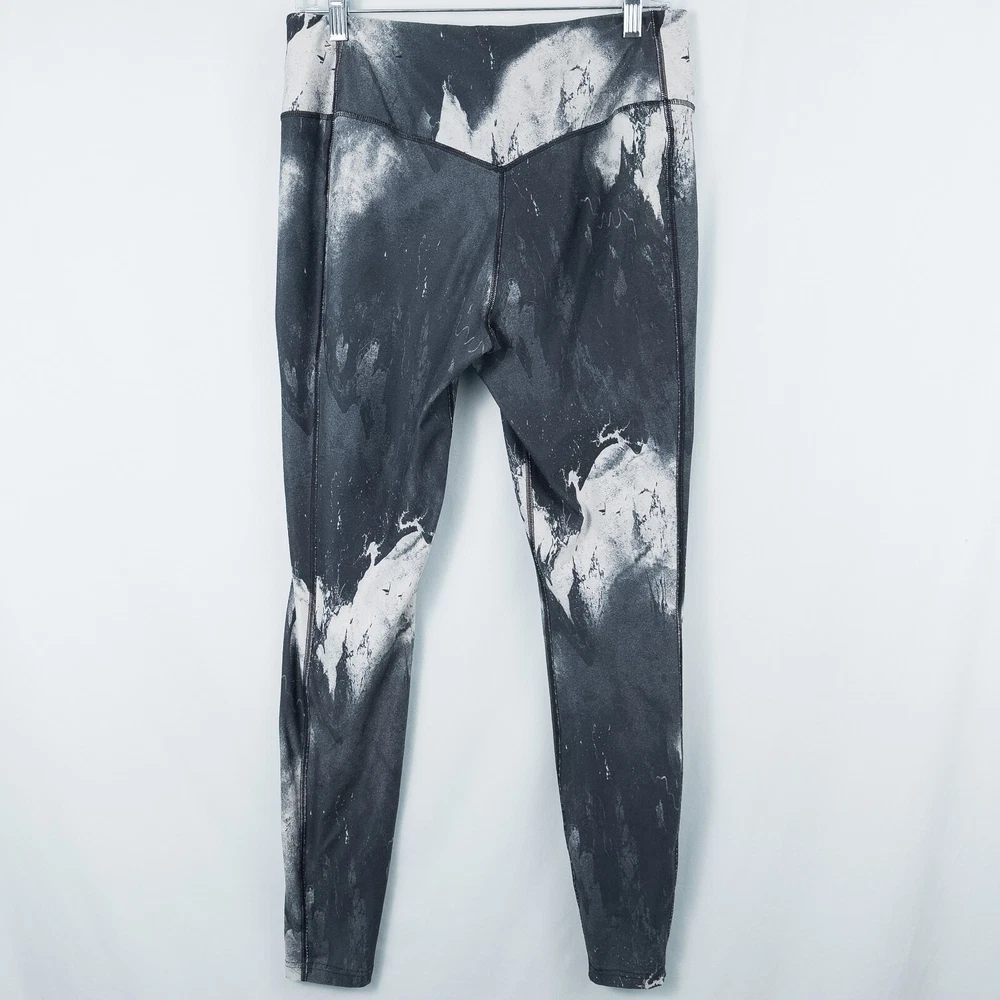 Nike Women's Dri-Fit Ten One Athletic Leggings * Condition: Good pre-owned condition. There's wash wear throughout and some cracking of the inside printed tag and waistband logo. No stains or holes. Please see photos. * Size: Large * All measurements are approximate and taken lying flat. Please see photos as well. * Waist: 15” across * Inseam: 28.5” * Rise: 10.25” * Color: Gray, black, white * Pattern: Marble * Material: 88% Recycled Polyester, 12% Spandex * Wide stretchy waistband * Inner waistband pocket * Sweat wicking and quick drying material * Style Number: 522097-015 * Machine Washable Style Profile: Athletic, Activewear, Athleisure, Gym, Training, Running, Fitness All of my items are stored in a smoke-free, dog-friendly home.