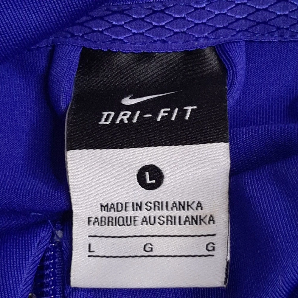 Nike Dri-Fit Womens Athletic Shorts Size Large Royal Blue Pockets Full Zip Approximate measurements as follows*: length - 25.5"; shoulders -16"; chest - 40"; hem - 40"; sleeve - 25"; cuff - 8" Great condition with minimal signs of use or wear * Measurements are taken using a soft sewing tape with the garment lying flat: shirt length is from shoulder seam to bottom of hem, shorts length is from top of waistband to hem ; shoulder is from one shoulder seam to the other; chest is from one underarm seam to the other then doubled ; hem is from one side of bottom seam to the other then doubled; sleeve is from shoulder seam to sleeve cuff; cuff is from one side of cuff to the other and doubled