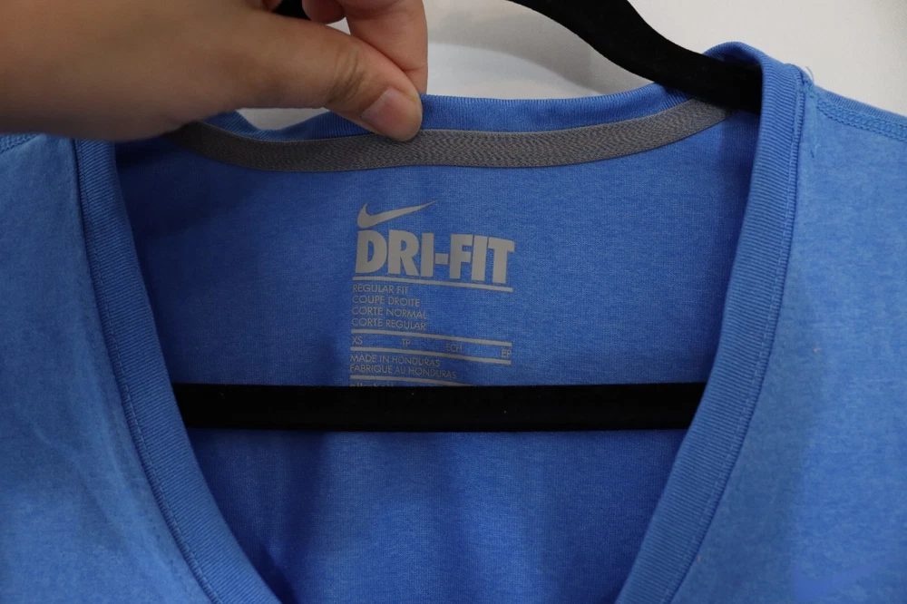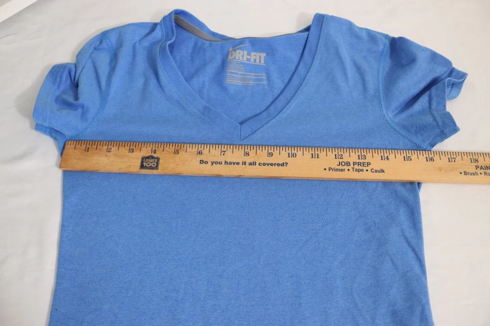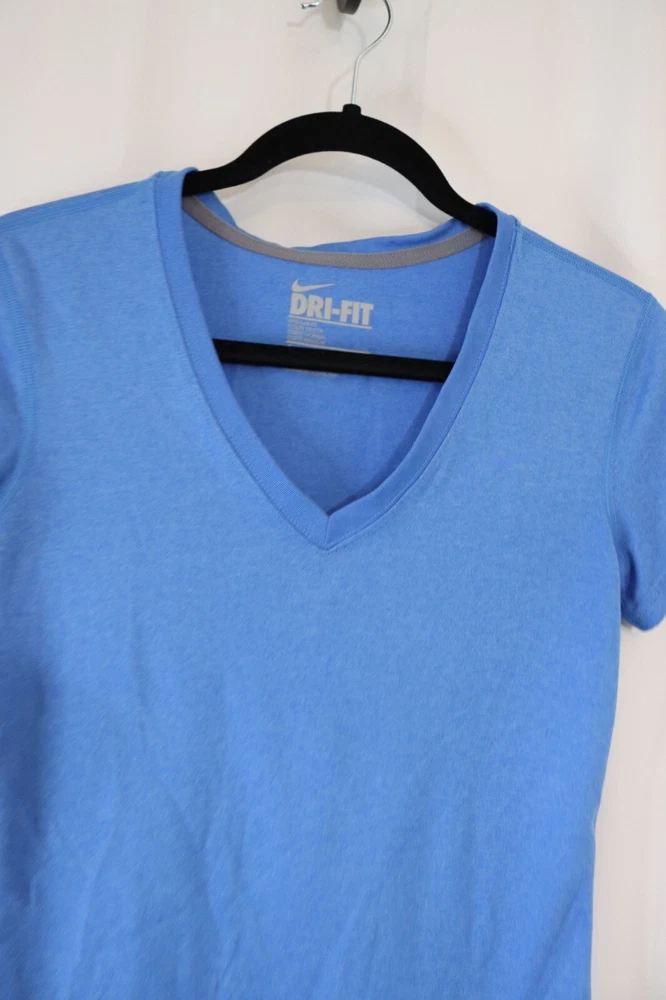 Style: Pullover Material: Polyester Size: XS Occasion: Activewear, Casual Department: Women Brand: Nike Type: Casual Sleeve Length: Short Sleeve Product Line: Nike Dri-FIT Color: Blue Size Type: Regular Pattern: Solid Neckline: V-Neck Model: Nike Dri-Fit Season: Fall, Spring, Summer Closure: Pullover