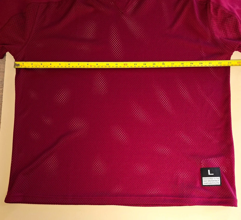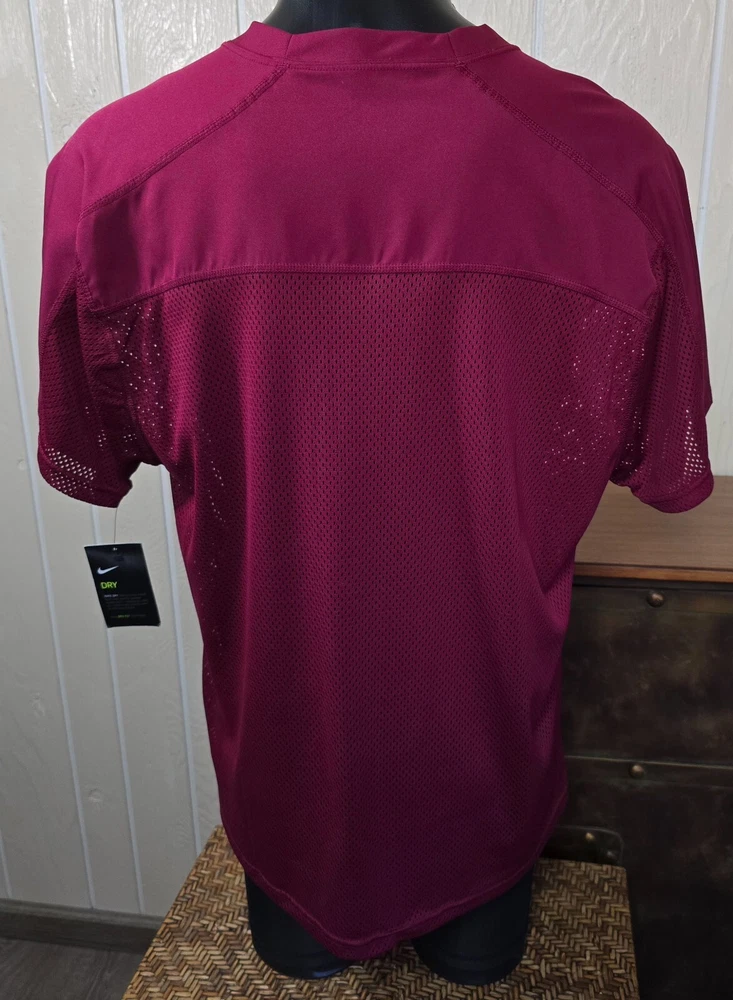 An Incredible one time opportunity to own this Nike Dry Mesh Practice Football Jersey Short Sleeve Maroon Color Sz L NWT ***No remarkable defects **PIT TO PIT IS 23 in ***VIEW ALL MEASUREMENT PHOTOS FOR PROPER FIT**** Explore the in depth photos showing every angle possible as if you have it in your hands. Thank you from all of us at DPACTIVEXPRESS ***Note 1: Display stands not included with all items unless specifically stated in the title. ****Note 2: DPACTIVEXPRESS carries a diverse collection of brands in this category, so we take a pit to pit measurement photo. ~~~~~~~ITEM IN THE LISTING PHOTOS IS THE ITEM YOU WILL RECEIV