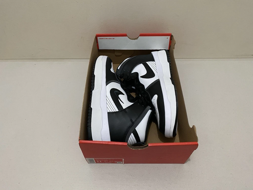 Nike Dunk High Up Womens Shoes US 11 UK 8.5 EU 43 New Black White Sneaker Panda ITEM DESCRIPTION: WOMENS LACE UP SHOES FOR CASUAL / WALKING / PARTY WEAR " NIKE TAG" MATERIAL COMPOSITION ---> ( REFER TO PHOTO 23 ) COLOR : White / Black - Dark Smoke Grey SIZE: ( REFER TO PHOTO 24 ) --> can fit mens too mens US 9.5 PLEASE REFER TO THE PHOTOS I HAVE PROVIDED FOR THE DESIGN OF THE ITEM PLEASE NOTE : THE BOX IS MISSING THE TOP LID ( PLEASE REFER TO THE PICTURES PROVIDED FOR CONDITION OF THE BOX ) ( REFER TO PHOTO 15 ) PLEASE NOTE: THERE ARE SOME RIPS , TEARS AND SOME BENTS AND DENTS ON THE BOX ( REFER TO PHOTO 15, 16, 17, 18, 19, 20, 21 ) PLEASE NOTE: THE NIKE SIZE TAG WAS DETACHED ON THE RIGHT PAIR OF THE SHOES We Use Australia Post for Posting and the Postage Price Includes Shipping, Handling and Packaging and Tracking Number We Can Ship International Too International Shipping is Calculated on Your Exact Location --- It Includes Shipping, Handling and Packaging Please Wait for the Invoice to Be Sent Please Don't Hesitate to Ask Question and We Will Answer It as Soon as Possible Purchase With Confidence Thanks Thanks for Purchasing Please Check Our Other Items Listed !!!