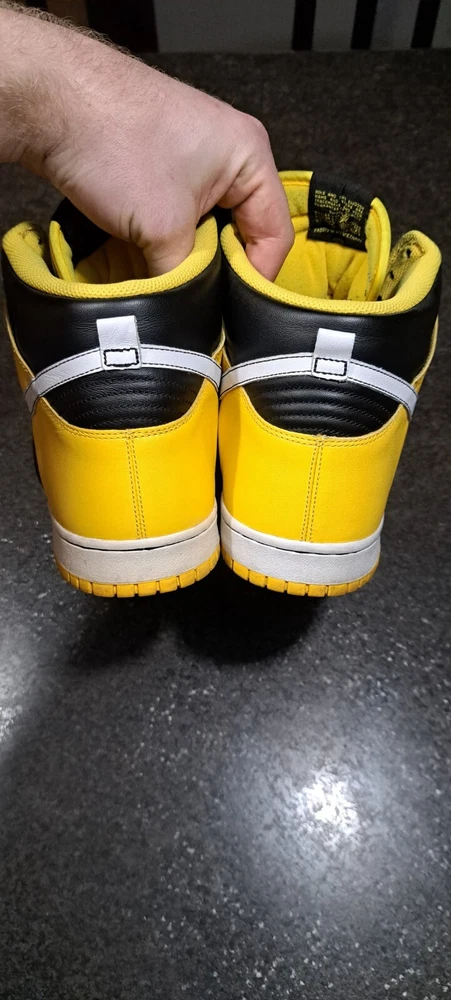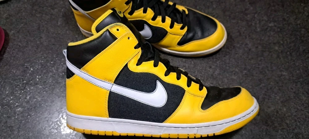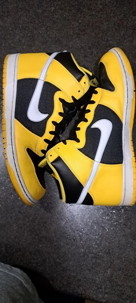 Dunk high yellow black from 2008 extreamly rare especially in this size. Pairs on goat are over $300, and there isn't a single 14 anywhere. Still wearable coming from my personal collection.