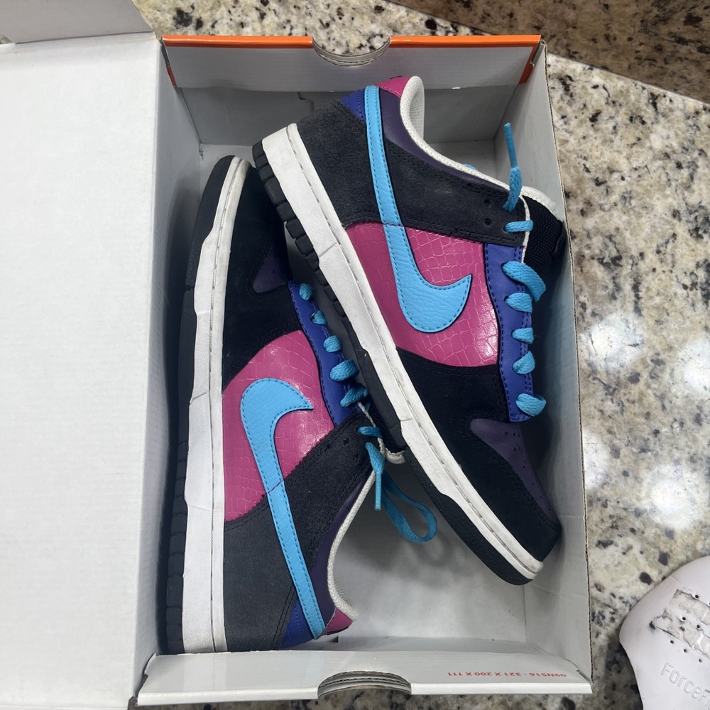 The Nike Dunk Low 6.0 Wmns Multi-Color Basketball Shoes Sneakers in size 8.5 are a stylish and comfortable option for women looking for athletic footwear. With a low-top design and lace-up closure, these sneakers feature a colorblock pattern with the iconic Nike logo accents. Made with leather upper material, these shoes offer cushioning and breathability, making them ideal for activities like gym training, walking, skateboarding, and basketball. The shoe's release year of 2009 underlines its timeless style, perfect for any lifestyle or performance need.