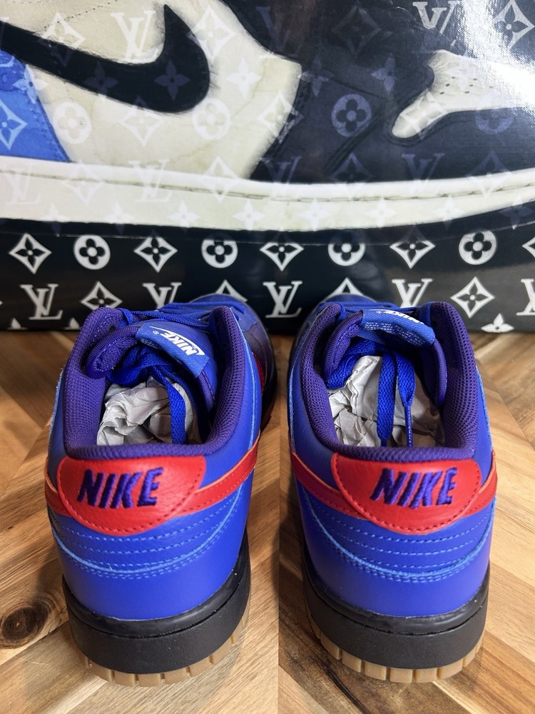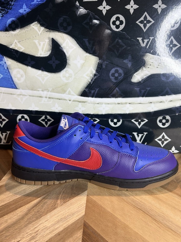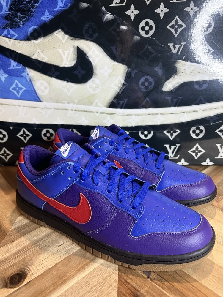 Step up your sneaker game with these limited edition Nike Dunk Low By You shoes. The style code FN0569-900 features a tumbled leather design and a low top shoe shaft style. These shoes are perfect for men who want to make a statement with their athletic wear. The blue color and lace-up closure add to the overall design, while the standard shoe width and leather upper material ensure a comfortable fit. Whether you're hitting the gym or the basketball court, these Nike Dunk shoes will keep you looking and feeling great. Don't miss out on this rare opportunity to own a pair of these highly sought-after sneakers.