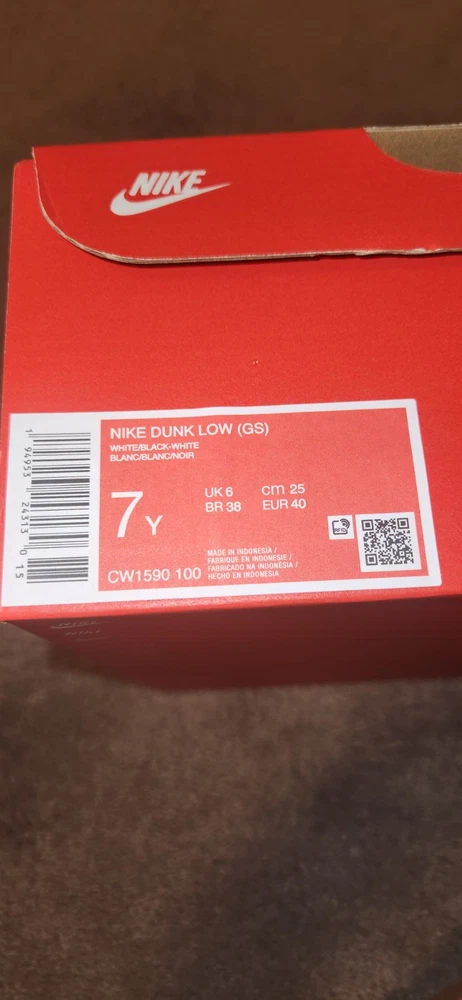 Nike Dunk Low (GS) WHITE BLACK WHITE Size 7Y