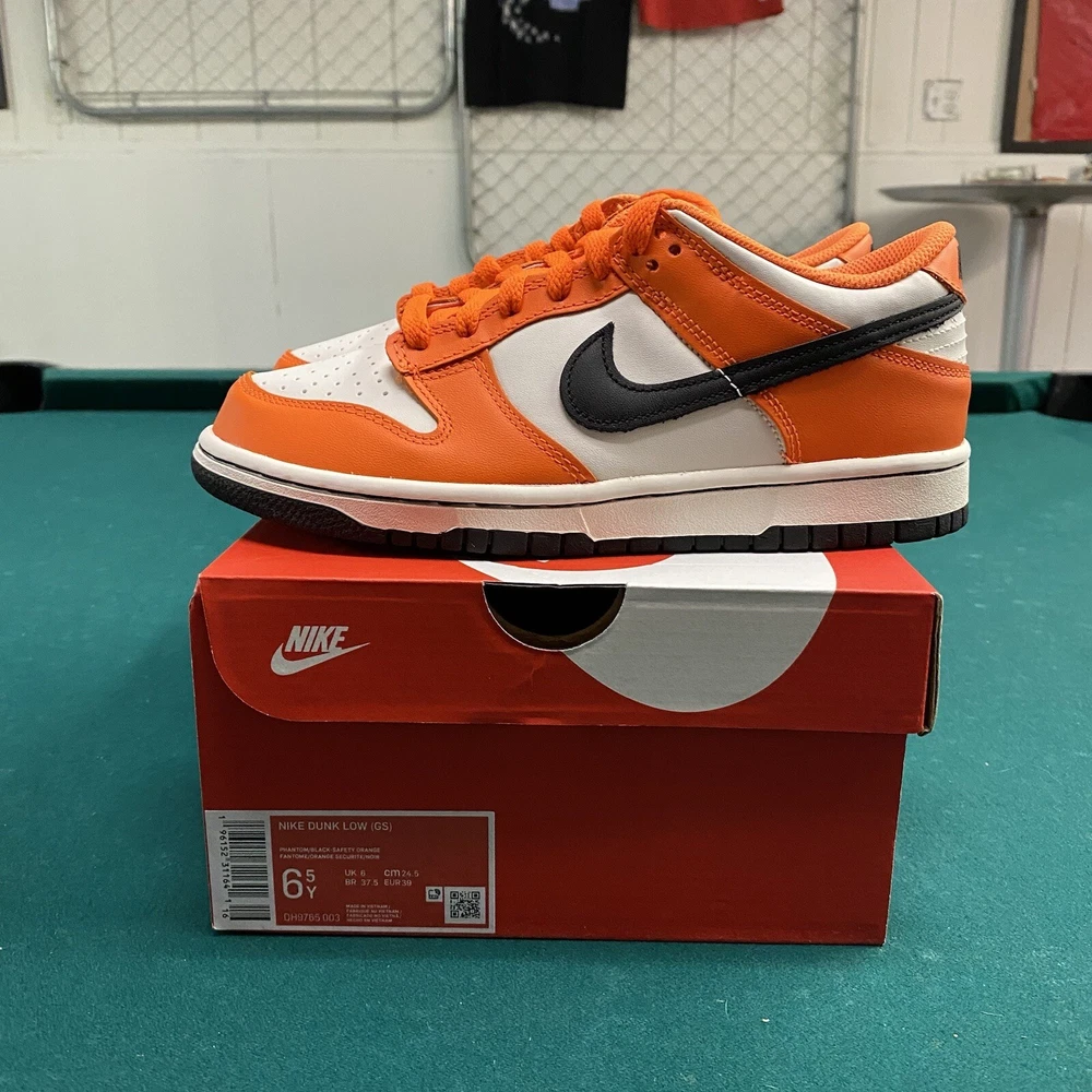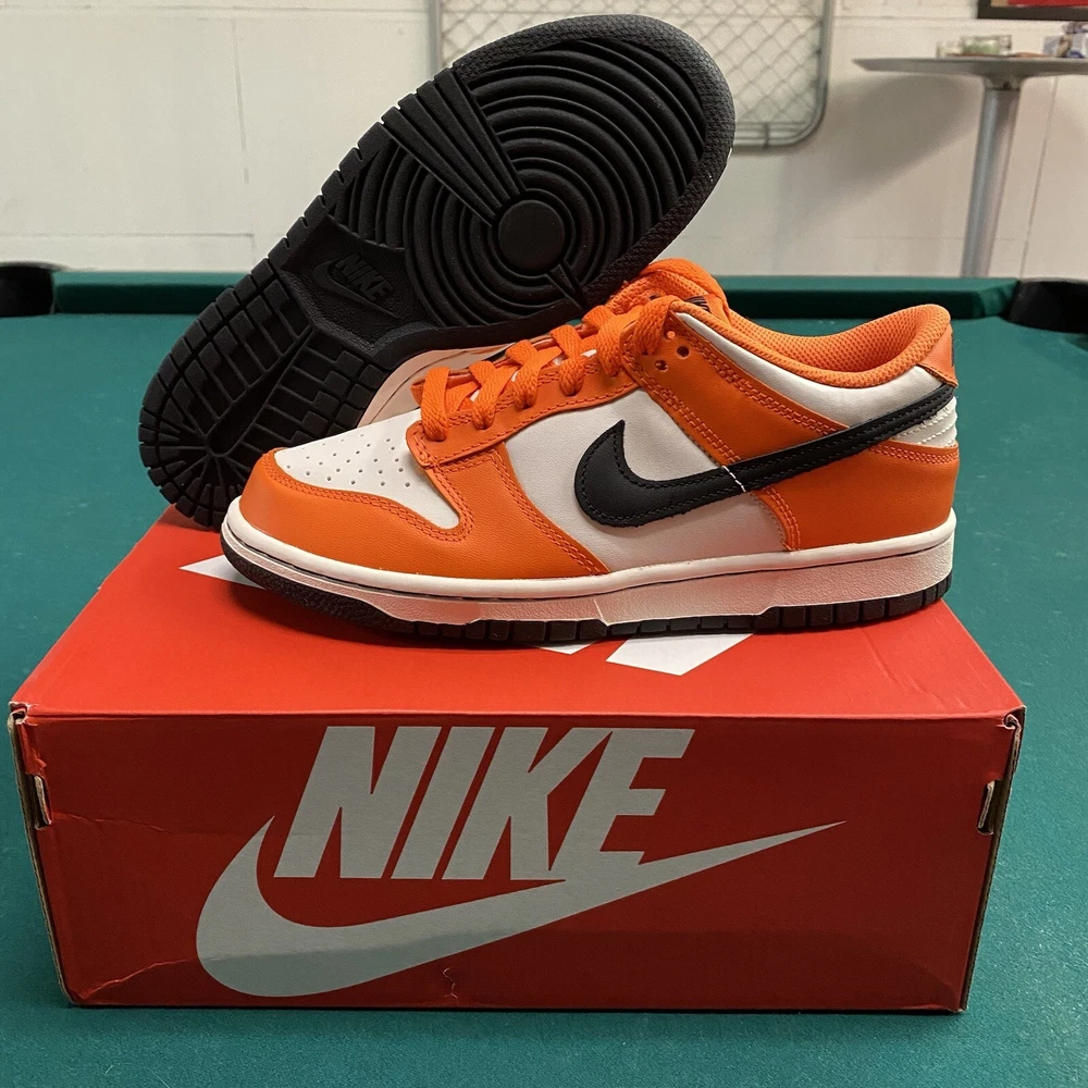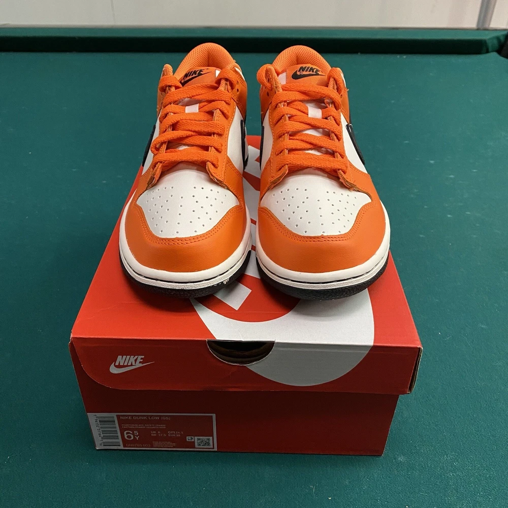 Step up your sneaker game with these Nike Dunk Low GS Halloween sneakers. The colorful colorblock design features the iconic Nike logo and is perfect for any occasion. With a lace-up closure and standard shoe width, these sneakers are a perfect fit for women's US shoe size 8 and UK shoe size 6. Get ready to Halloween in style with these Nike Dunk Low GS sneakers. 100% Authentic. In-Hand Ready to Ship. Brand New. Please see pics above for a closer look at product. Legit Seller.