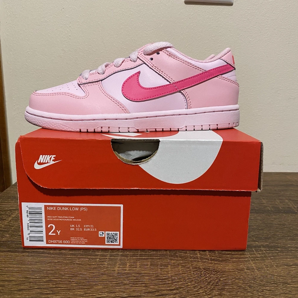 Get ready for some serious fun with these Nike Dunk Low sneakers! Little kids will love the Triple Pink colorblock design. Perfect for any occasion, whether it's for walking, school, or fashion, these sneakers are made with a cushioned and comfortable insole material, ideal for all-day wear. Truly a must-have for any young sneaker enthusiast! 100% Authentic. In-Hand Ready to Ship. Brand New. Please see pics above for a closer look at product. Legit Seller.