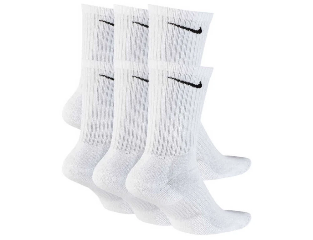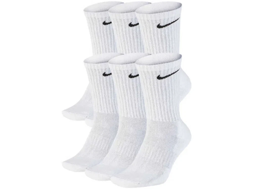 COMFORT AND SUPPORT. TRAIN HARDER WITH NIKE EVERYDAY CUSHION CREW TRAINING SOCKS (6 PAIRS). THE SOLE MADE FROM THICK TOWEL FABRIC OFFERS EXTRA COMFORT WHEN DOING FOOT EXERCISES AND LIFTING WEIGHTS. WEAR-RESISTANT YARNS ON THE SOLE REDUCE THE RISK OF SLIPING. SWEAT-WICKING FABRIC HELP YOU STAY DRY AND COMFORTABLE. THICK TOWEL FABRIC SOLE IS COMFORTABLE AND ABSORBS IMPACT EFFECTS. ABRASION-RESISTANT YARNS ON THE SOLE REDUCE THE RISK OF SLIPING. ANATOMICALLY CORRECT LEFT AND RIGHT SOCKS ARE DESIGNED FOR A NATURAL FIT. CLASSIC LENGTH SILHOUETTE MAKES THE CALF COMFORTABLE.