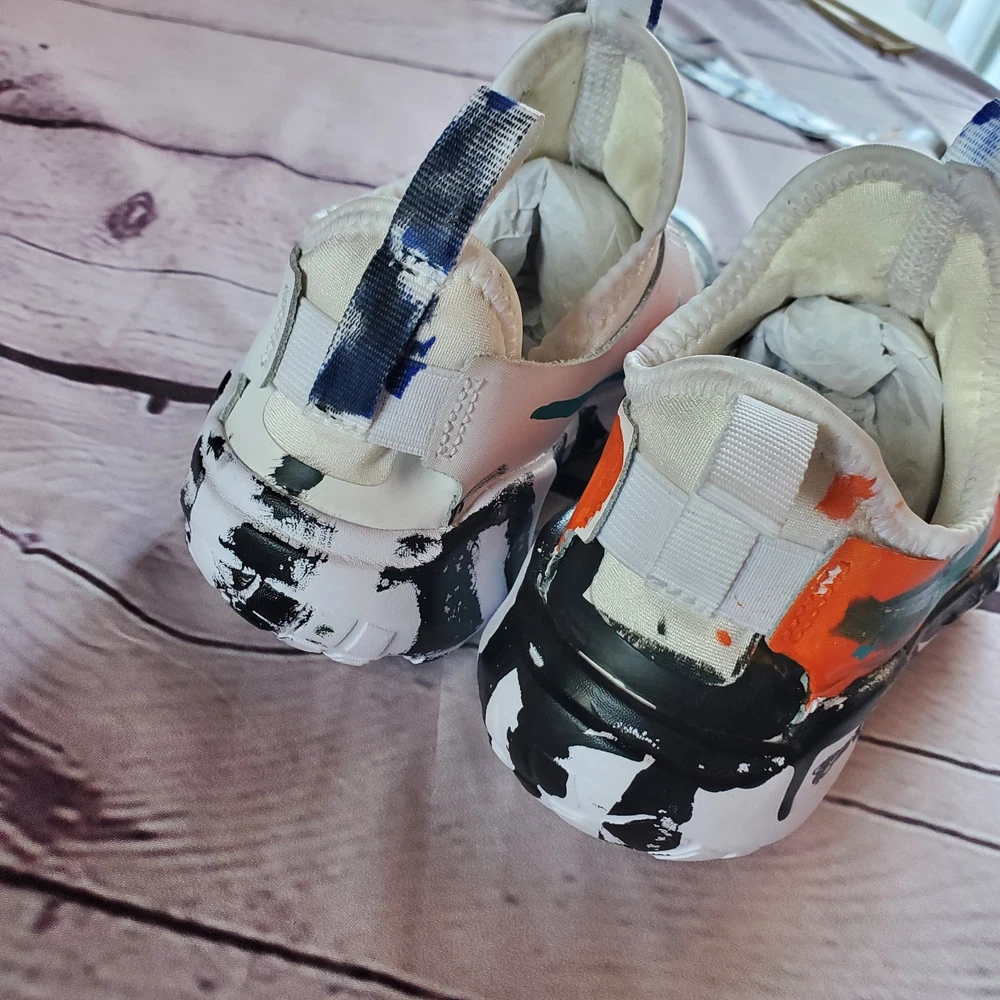 I'm not sure if the color of these shoes were customized or they came like that from fabric. I bought them like that but they are new, since they have no sign of ever been worn. Please see pictures for details and let me know if you have any questions I ship the next business day