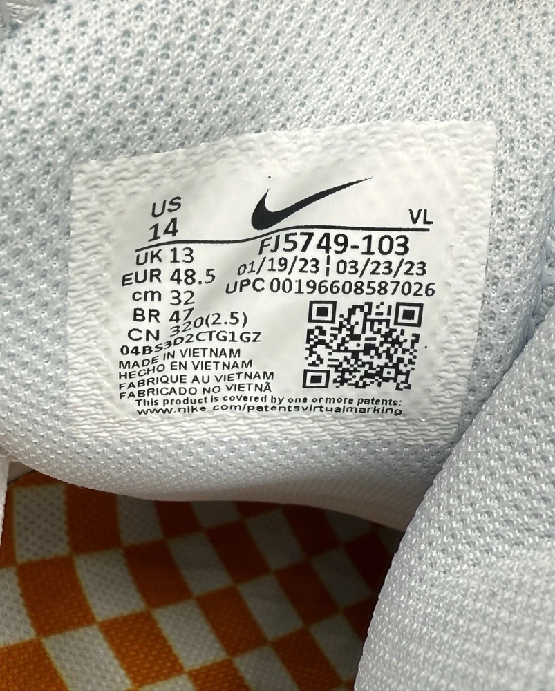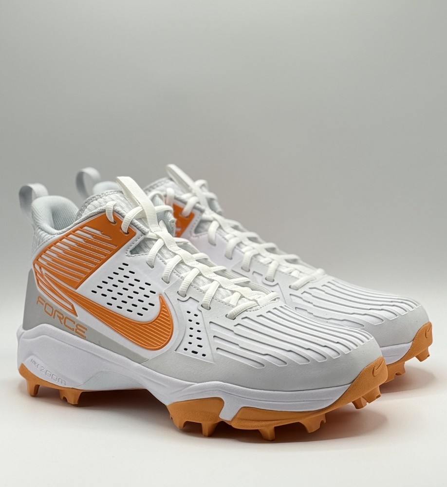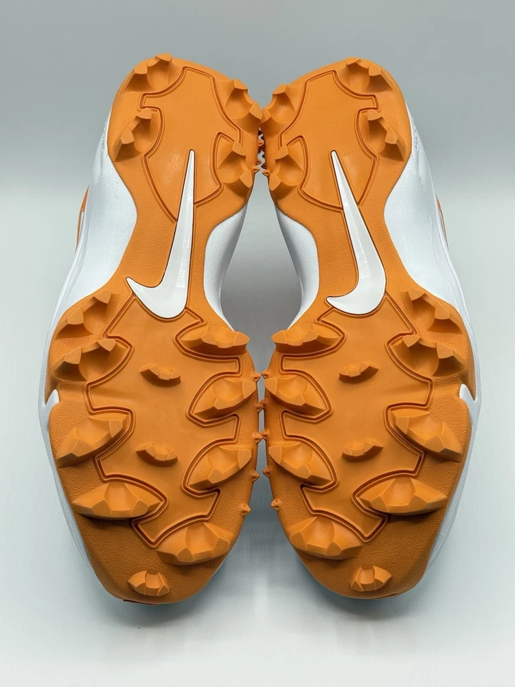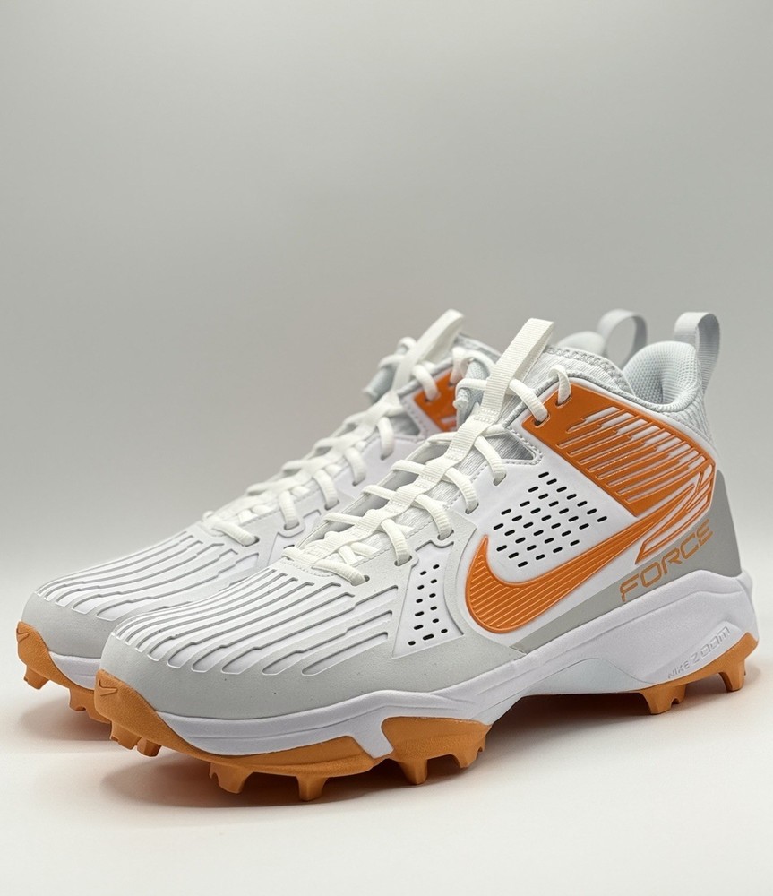 Lineman Cleats Rubber Molded Football Cleats White Orange Tennessee Volunteers Elevate your game with the Nike Force Savage Pro 3 Shark Men's Football Cleats, a top-tier choice for athletes seeking performance and style. Designed for the dynamic player, these cleats feature a high-top synthetic upper in a striking orange colorblock pattern, ensuring both durability and standout visibility on the field. The cushioned insole and breathable lining offer comfort and support, while the durable rubber outsole provides superior traction across all seasons. With a size 14 US (13 UK, 48.5 EU) fitting, these cleats are tailored for a broad range of movements, from gym training to school sports and, of course, football. The sneaker-style lace-up closure ensures a secure fit, and the limited-edition design with the style code FJ5749-103 makes them a unique addition to any athlete's collection. Whether you're representing the Tennessee Vols or pushing your limits in performance, these cleats are manufactured in Vietnam and ready to deliver exceptional results.