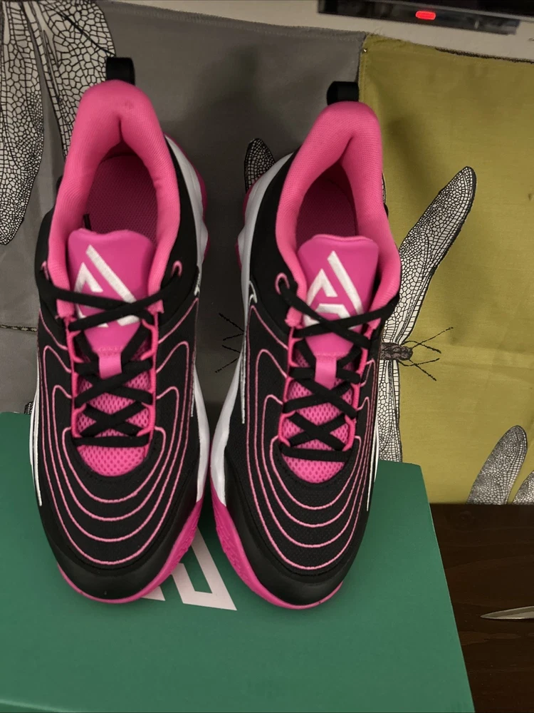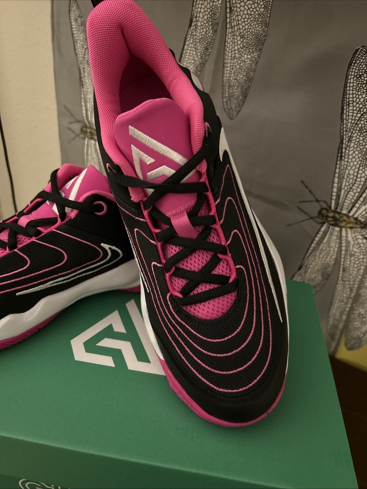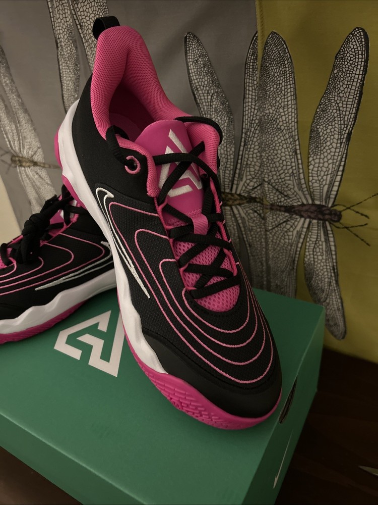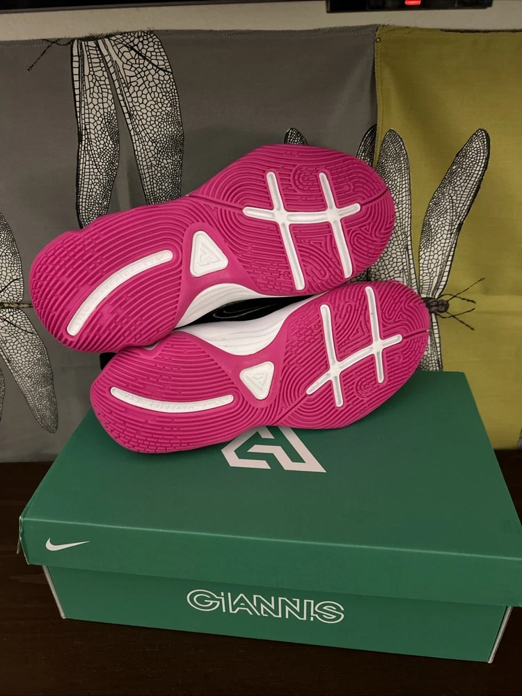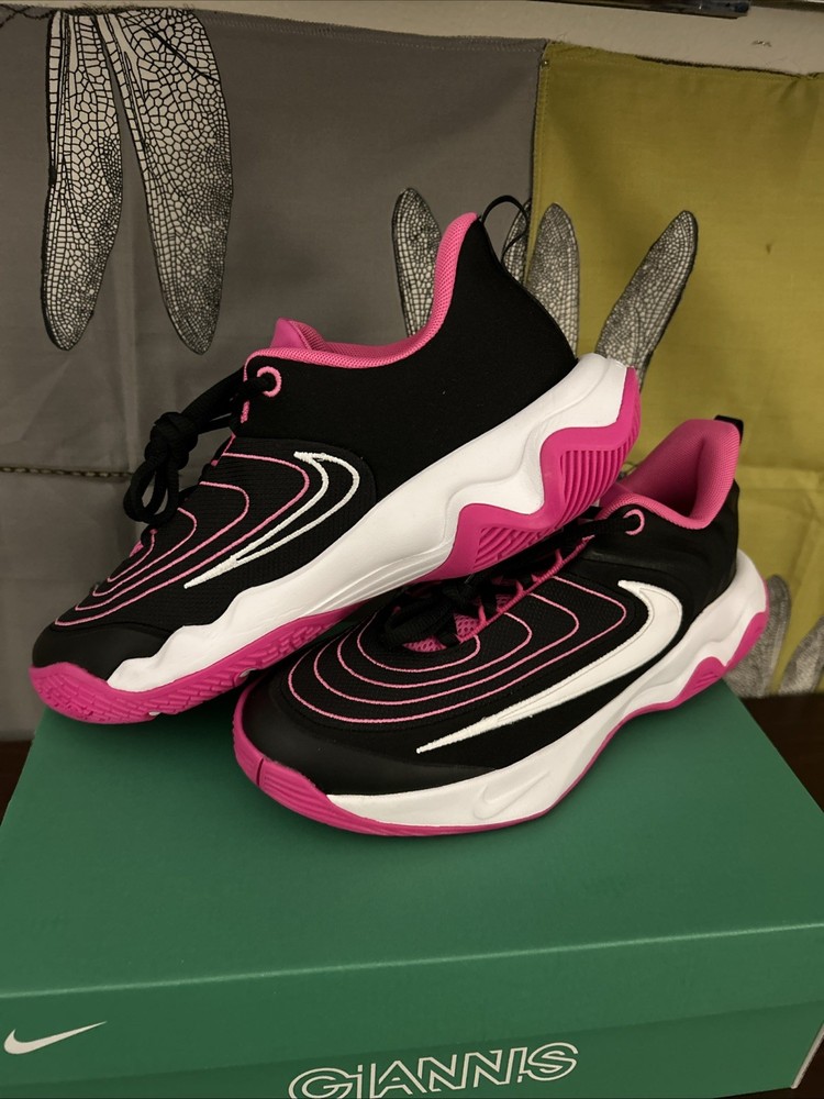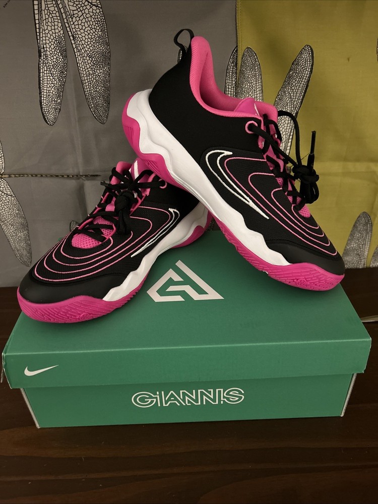 The Nike Giannis Immortality 4 sneakers in size 7Y or 8.5W (UK shoe size 6) are a stylish and versatile choice for young athletes. Featuring a low top shaft style and lace-up closure, these athletic shoes offer a comfortable fit for various activities such as gym training, walking, and basketball. The black, white, and pink color scheme adds a fun and vibrant touch, while the fabric lining and foam insole provide added comfort. With a rubber outsole and standard shoe width, these Nike sneakers are designed for performance and durability.