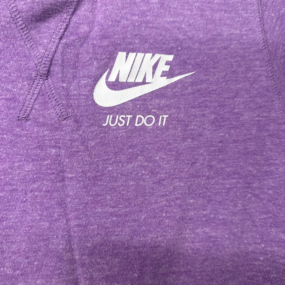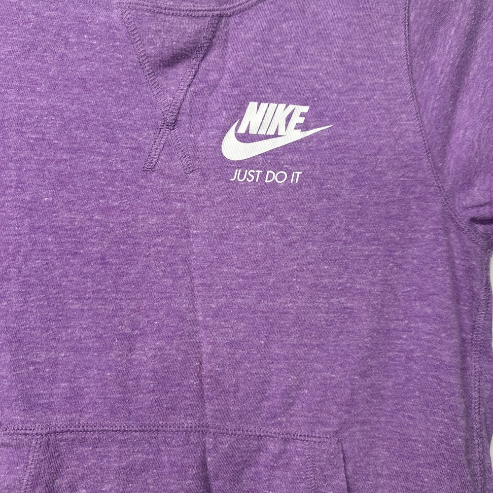 The Nike Girls T-Shirt in size Large is a stylish and comfortable top for young girls. This lavender short sleeve shirt features the iconic "Just Do It" logo with a pocket, making it perfect for casual occasions during the summer, fall, and spring seasons. Made from a cotton blend fabric, this pullover shirt is easy to wear and ideal for various activities such as walking, school, and running & jogging. The Nike brand adds a sporty and colorful touch to this popular and versatile piece of clothing. It is slightly lighter than how it looks in my photos The pit to pit is 16 inches and the shoulder length down is 19.5 inches