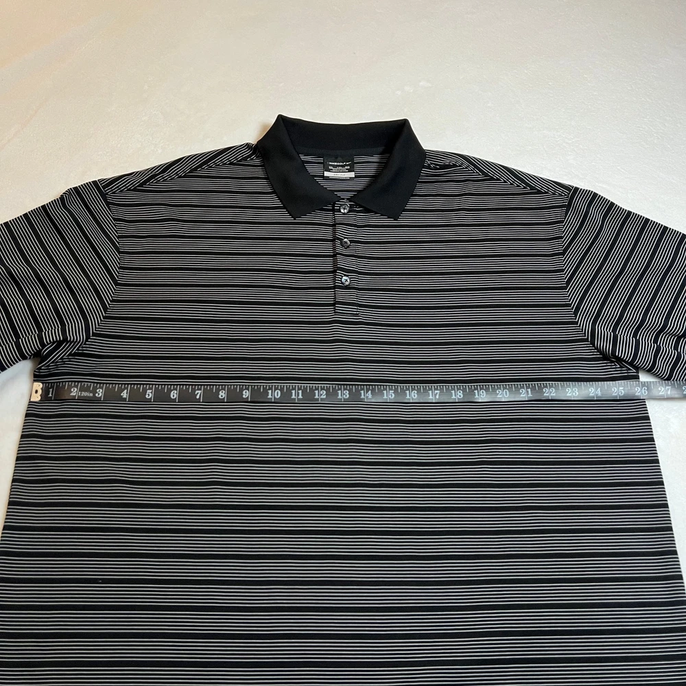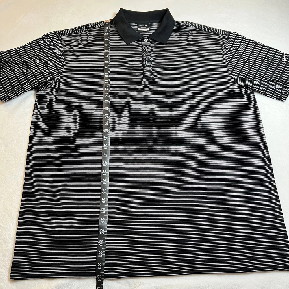 Nike Golf Dri-Fit Striped Golf Polo Shirt Size XXL Performance Stretch Sports CONDITION: Pre-Owned. Excellent Used Condition. FLAWS/ALTERATIONS: No flaws. COLOR: Black/White SIZE: Men’s Size XXL DETAILS: Pull over Short sleeve Collar Stripe Polo Quarter button down MEASUREMENTS: Chest: 26" Full Length: 33" **All measurements are approximate and are taken flat** MATERIAL: 100% Polyester Bundle 2 OR MORE items to save more! Reasonable offers are welcomed! TAGS: Casual Comfy Spring Summer Travel Vacation Golf Sports Athletic Athleisure Active Activewear Performance Classic Staple Effortless