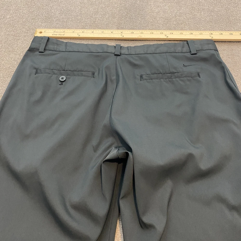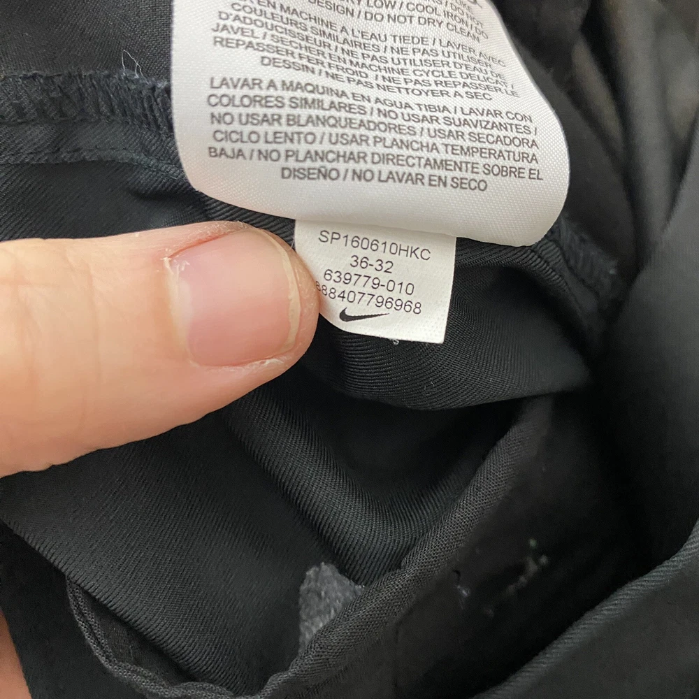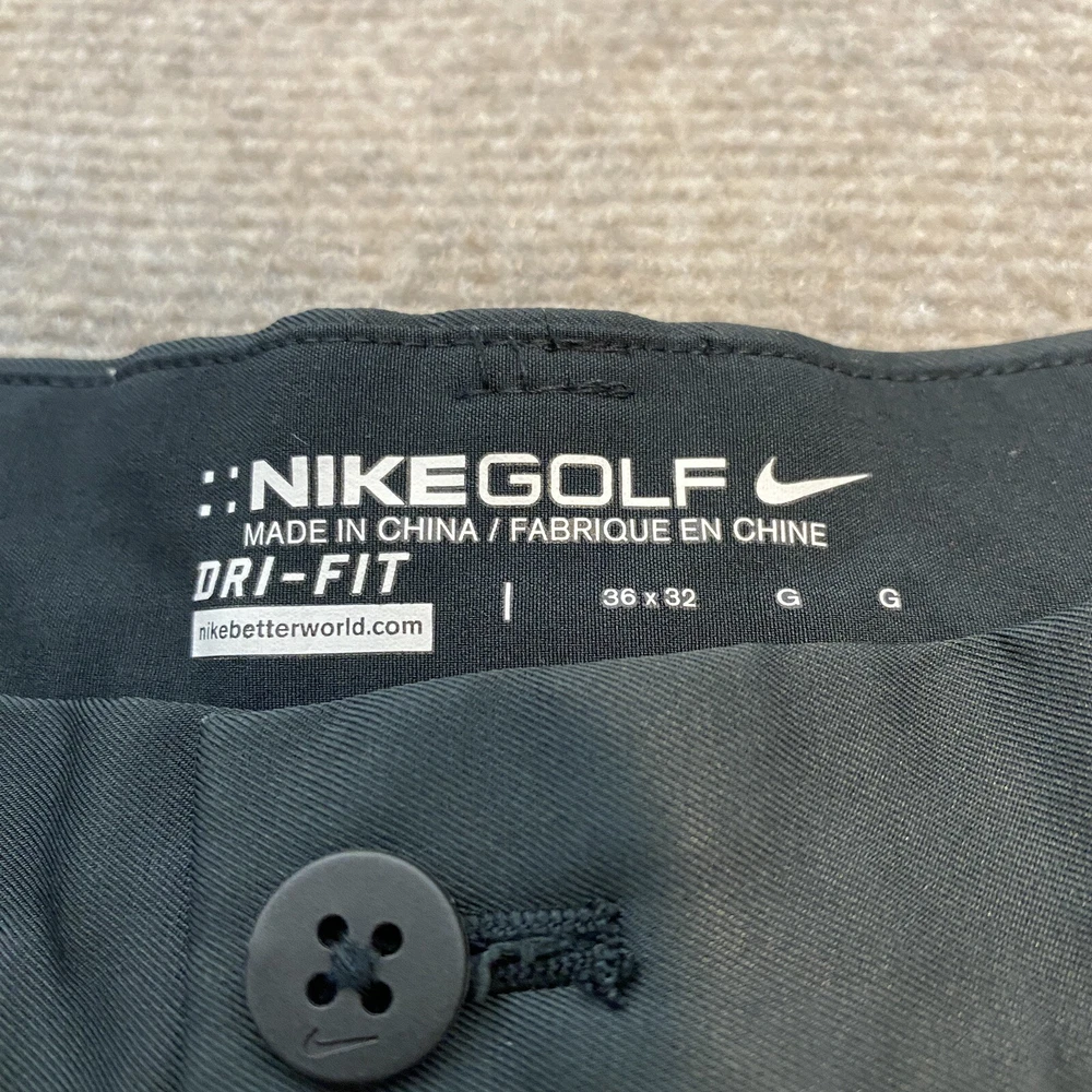 Leg Style: Straight Size: 36 Type: Pants Style: Khakis Closure: Zip Material: Polyester Blend Size Type: Regular Performance/Activity: Golf, Walking Brand: Nike Department: Men Product Line: Nike Golf Inseam: 32 in Waist Size: 36 in Occasion: Activewear Color: Black Pattern: Solid