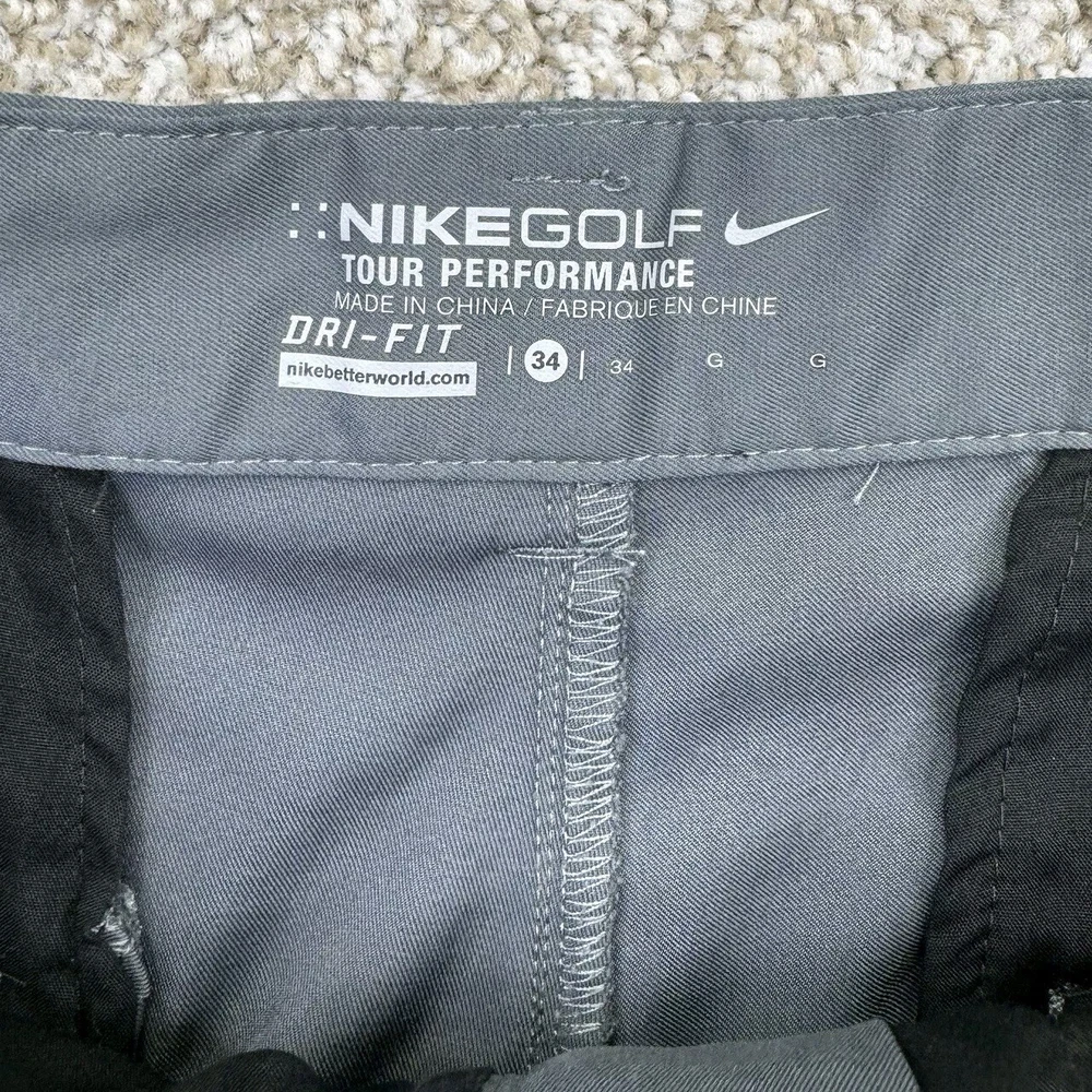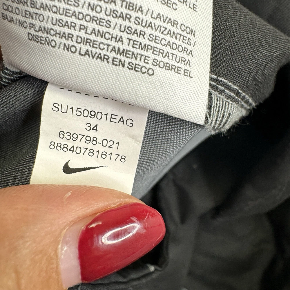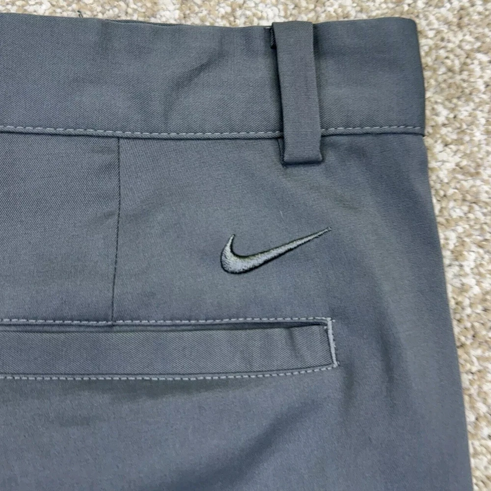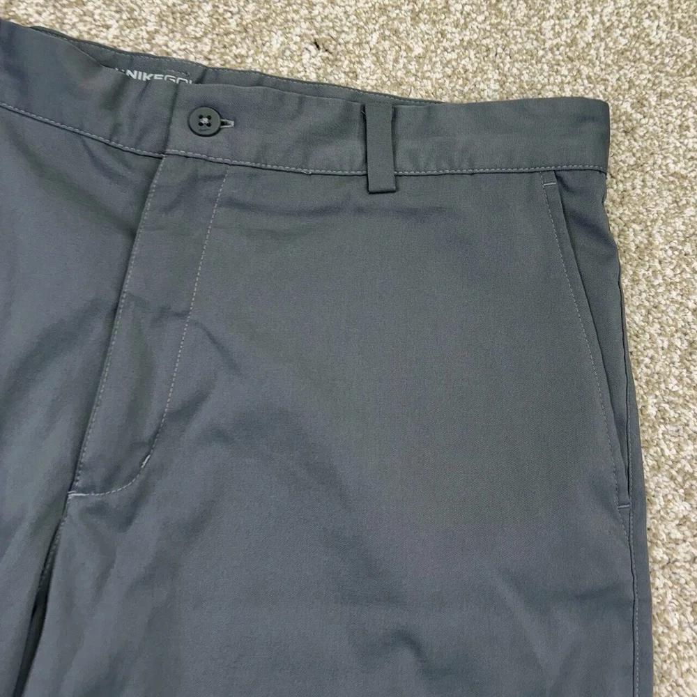 Pattern: Solid Garment Care: Machine Washable Brand: Nike Front Type: Flat Front Fit: Regular Size: 34 Department: Men Seller Notes: “See all photos with measurements and condition” Country/Region of Manufacture: China Occasion: Casual Pocket Type: Slash Pocket Size Type: Regular Vintage: No Waist Size: 34 in Style: Chino Material: Polyester, Spandex Closure: Zip Inseam: 10 in Season: Spring, Summer Rise: Mid (10-12 in) Features: Moisture Wicking, Pockets, Stretch, UV Protection Color: Gray