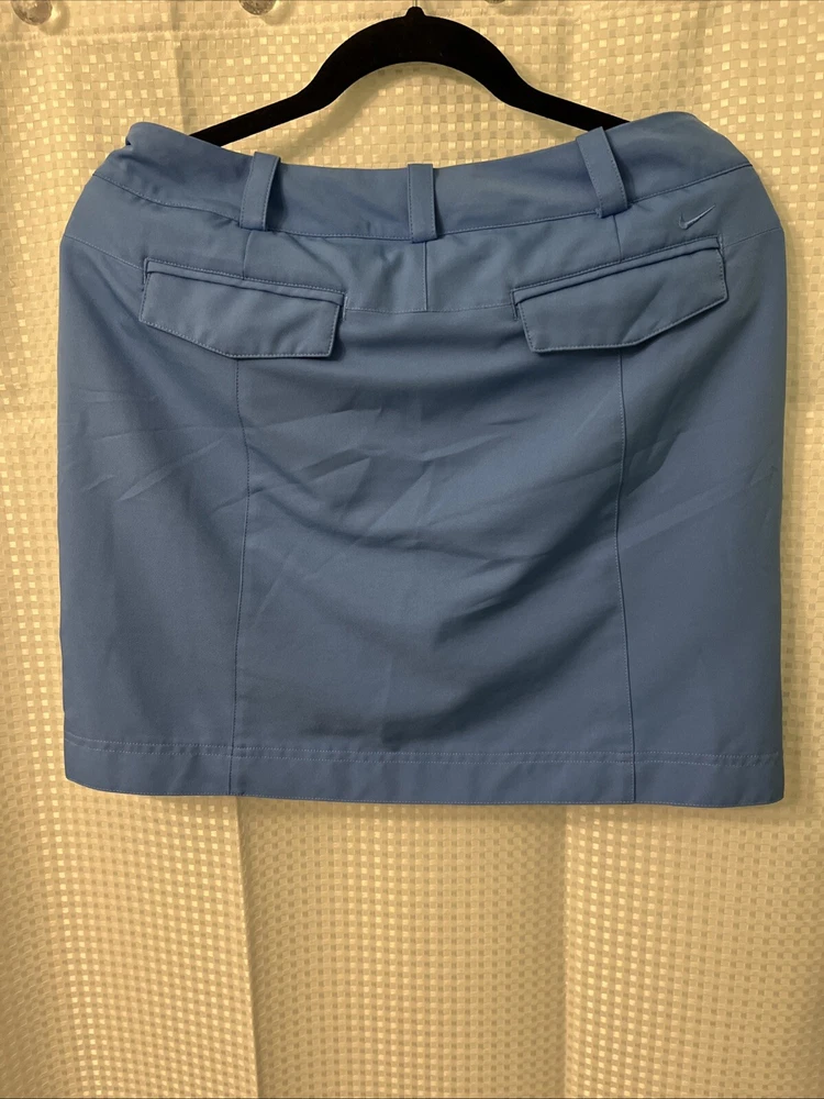 Elevate your golf game with this stylish Nike Golf Tour Performance skirt. Designed with dri-fit technology, it will keep you cool and comfortable throughout your round. The baby blue color is both chic and versatile, making it a perfect addition to any golfer's wardrobe. This athletic skirt is perfect for any occasion, whether you're on the course or just practicing your swing. It's made with high-quality materials and is built to last, so you can trust it will be a reliable part of your golf gear for years to come. Don't miss out on this must-have item for any serious golfer!