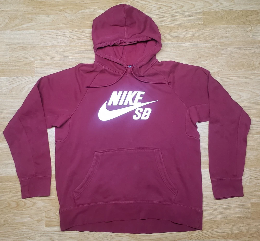 Elevate your skateboarding gear with the Nike SB Icon Hoodie in a vibrant red hue that stands out on the ramp. Designed with the needs of skaters in mind, this men's large hoodie combines functionality with style, featuring a comfortable cotton blend fabric that ensures breathability and durability for all your tricks and maneuvers. The hoodie comes equipped with a drawstring closure for an adjustable fit, long sleeves for added warmth, and handy pockets for your essentials. Its solid color and subtle logo accent give it a sleek, sports-inspired look, perfect for both outdoor adventures and casual outings. Whether you're grinding at the skatepark or chilling with friends, this Nike hoodie is your go-to for a relaxed yet stylish appearance.