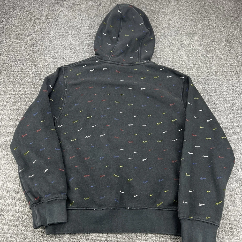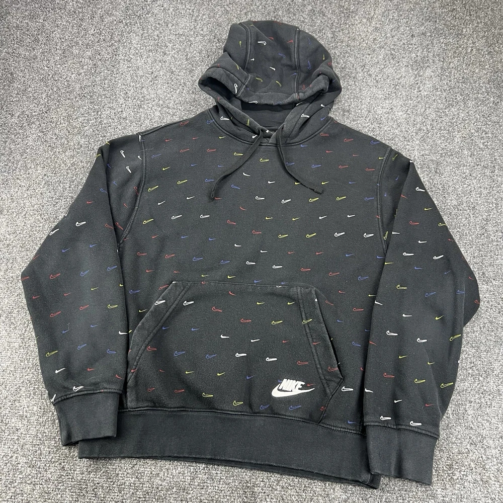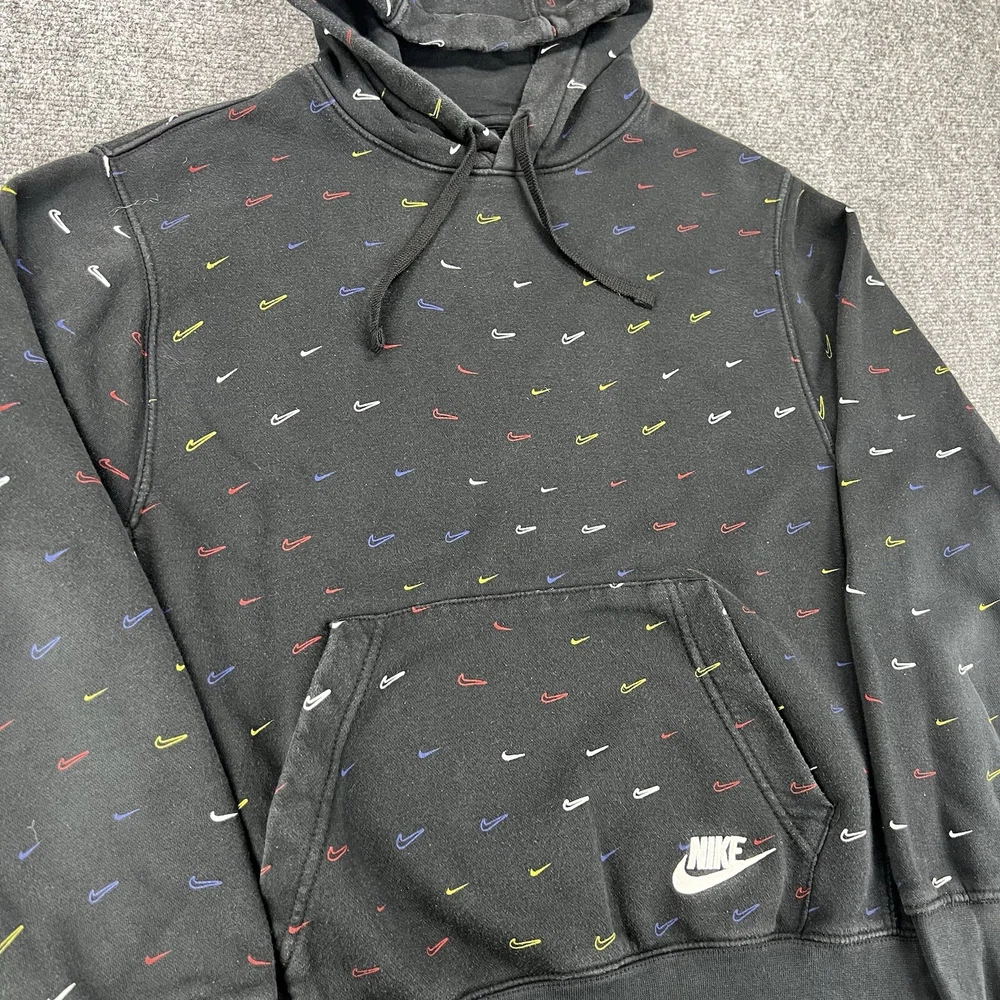 Nike Hoodie Mens Small Black Pullover Sweater Sportswear Fleece All over Swoosh