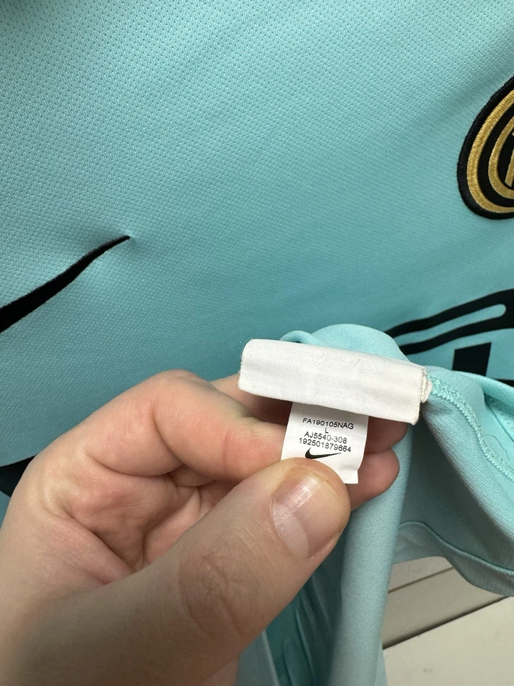 Officially Licensed: Yes Brand: Nike Country of Origin: Thailand Size: L Product: Jersey Sport: Soccer Team: Inter Milan Color: Light Blue, Black, Gold