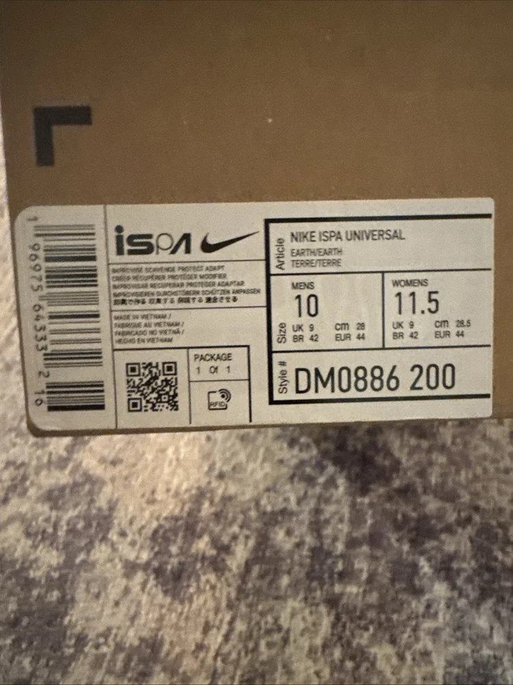 The Nike Ispa Universal Earth/Earth is a stylish and sport-inspired slip-on sandal perfect for casual occasions during the summer and spring seasons. This this multicolor sandal features the iconic Nike logo accent and standard shoe width for comfortable wear. Designed for men, this Nike ISPA product is a great choice for those looking for a durable and fashionable footwear option. This shoe combines quality, style, and performance for the modern man on the go. Color: Earth/Earth Style Number: DM0886-200 Men’s Size 10, UK 9, Women’s 11.5