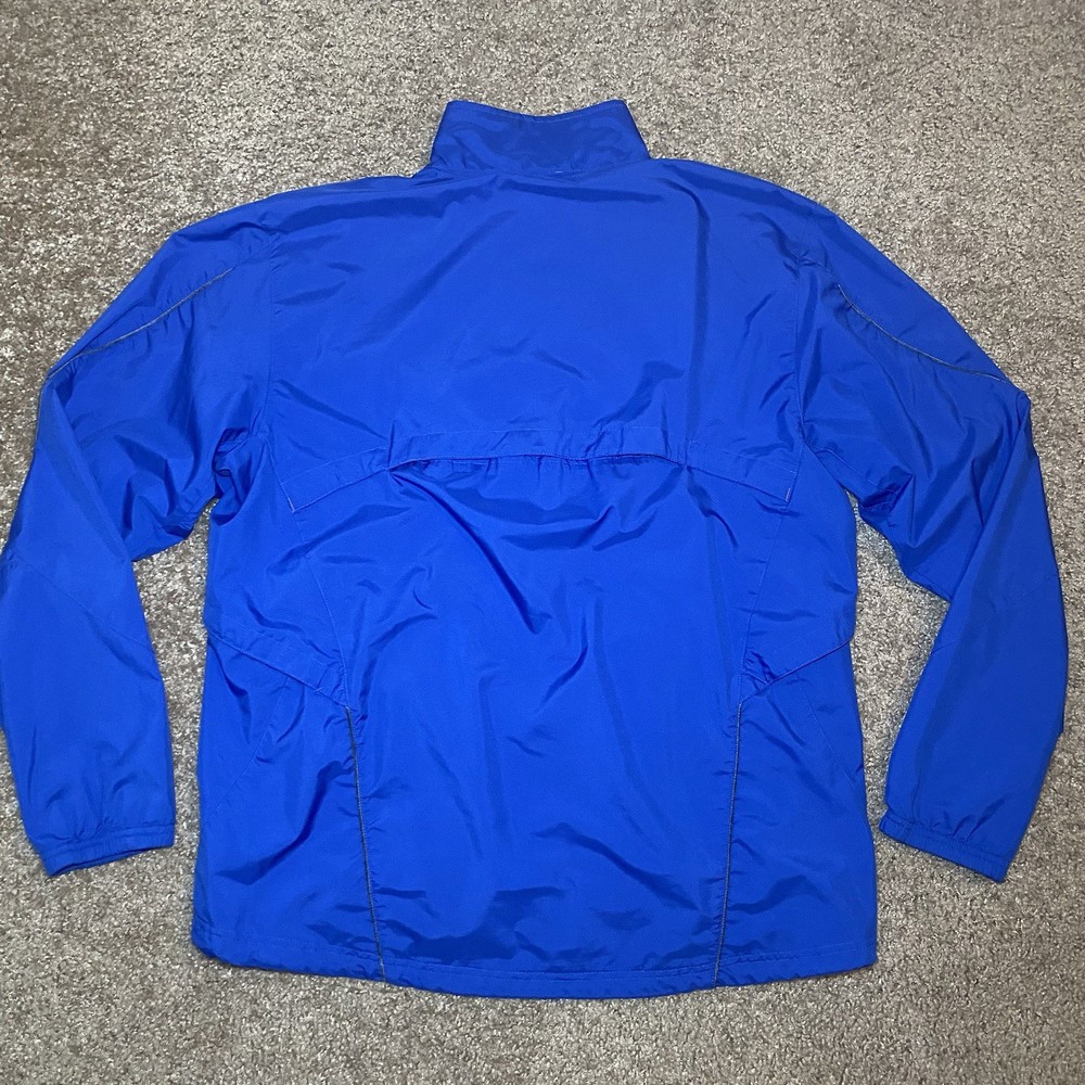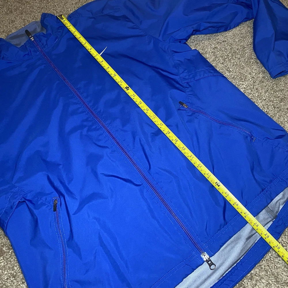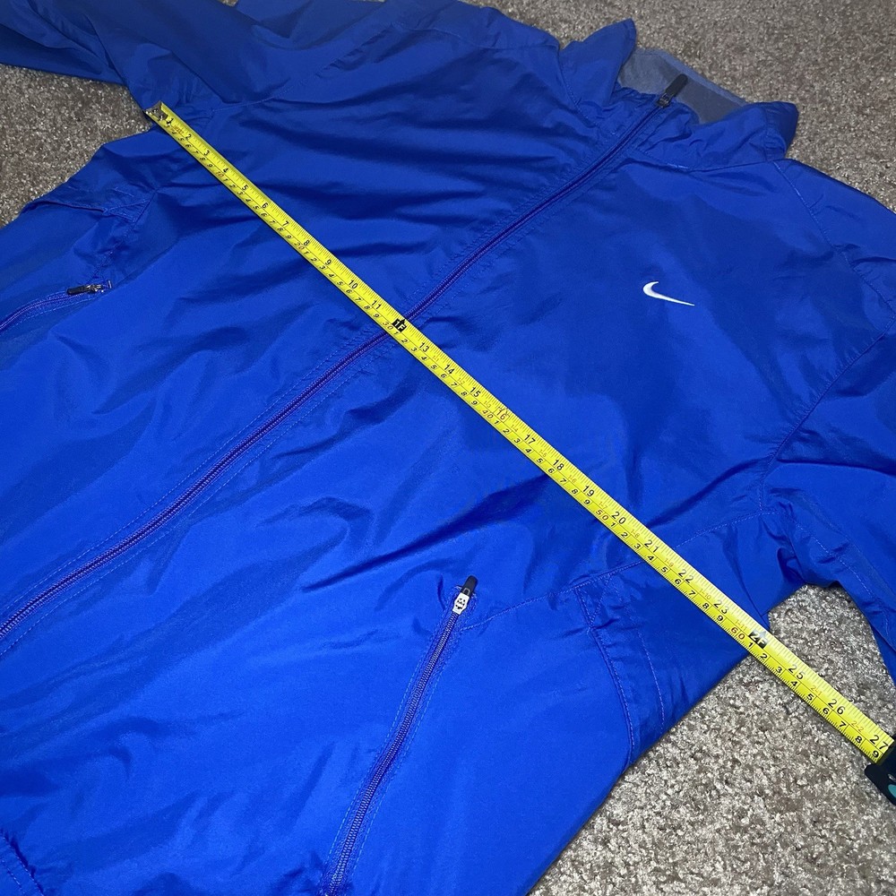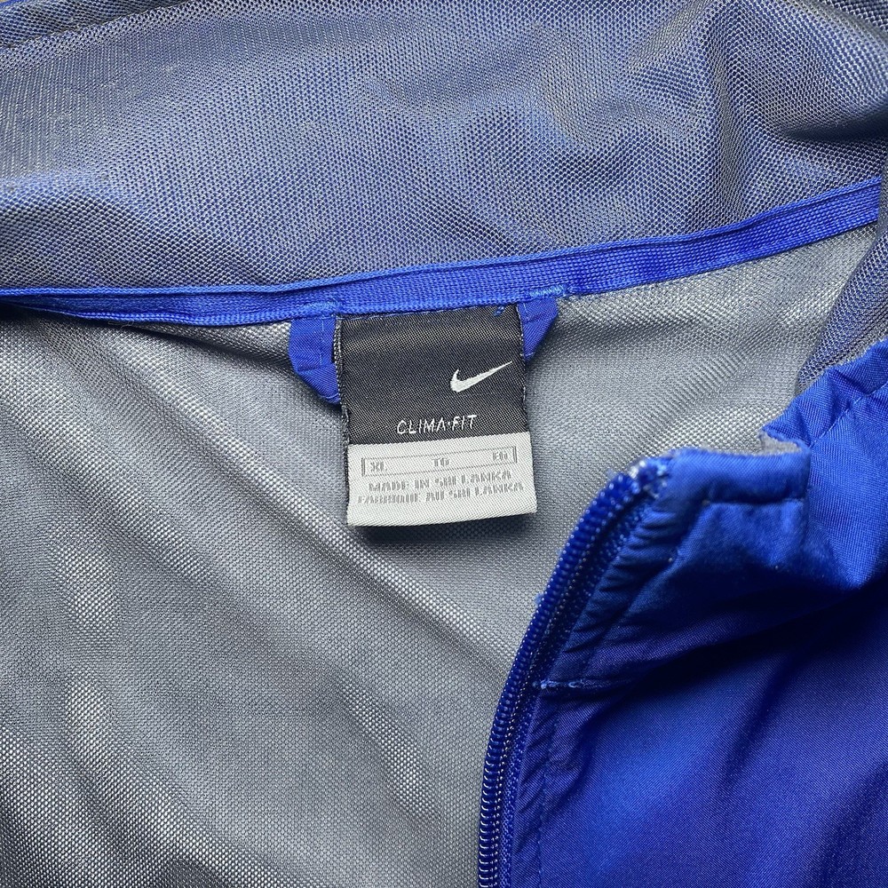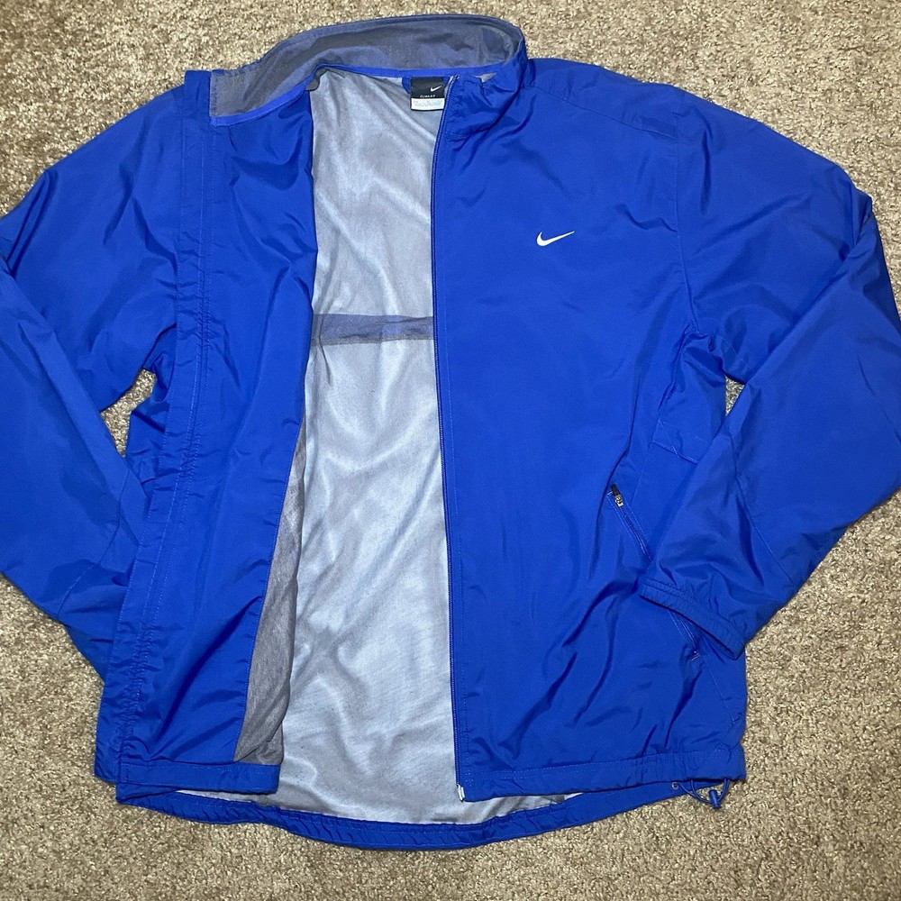 The Nike Jacket is a men's windbreaker in size XL, featuring a full zip design and vented construction for optimal comfort and performance. Made with nylon outer shell material in a stylish blue color, this 2000s Clima Fit jacket from Nike is perfect for outdoor activities and casual wear. The brand's reputation for quality and innovation ensures that this jacket will keep you looking and feeling great in any weather condition. Please look at images carefully.