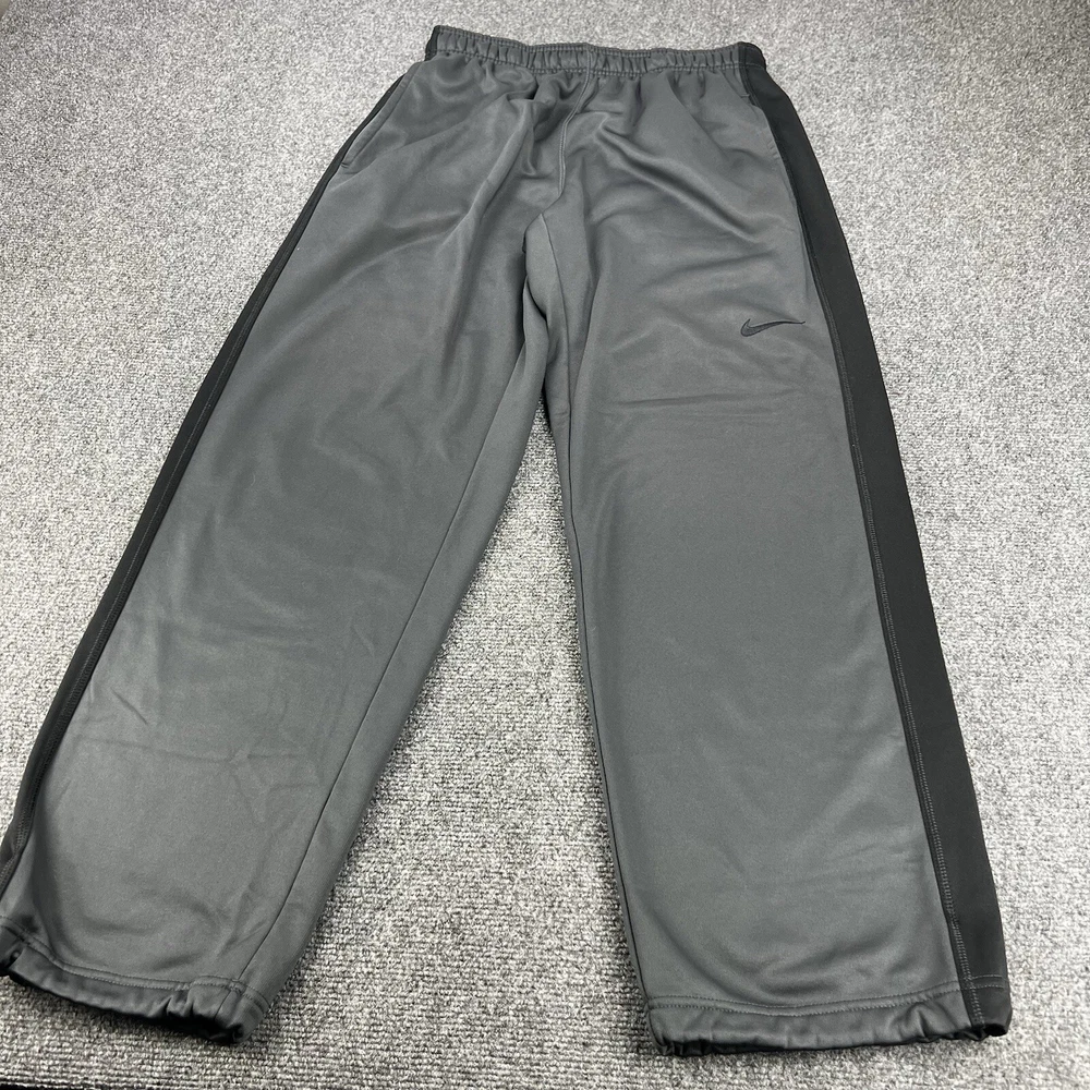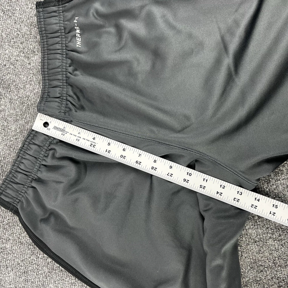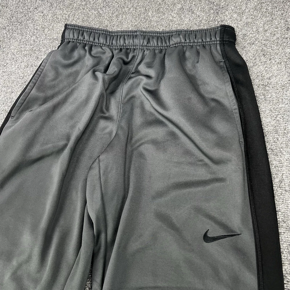 Vintage: No Compression Area: Waist Type: Pants Leg Style: Tapered Fabric Type: dri fit Performance/Activity: athleisure Model: Nike Inseam: 34 in Country/Region of Manufacture: Indonesia Compression Level: Moderate Garment Care: Machine Washable Brand: Nike Size Type: Regular Personalized: No Fit: Regular Handmade: No Closure: Pull On Season: Fall, Spring, Summer, Winter Pattern: Solid Material: Polyester Features: Breathable, Comfort, Easy Care, Lightweight, Moisture Wicking, Pockets, Quick Dry Personalize: No Color: Gray Character: nike Style: Track Pants Theme: none Department: Men Product Line: Nike Therma Occasion: Activewear, Casual Size: M