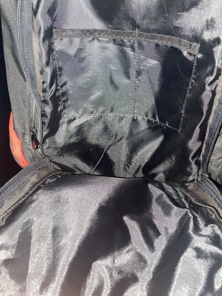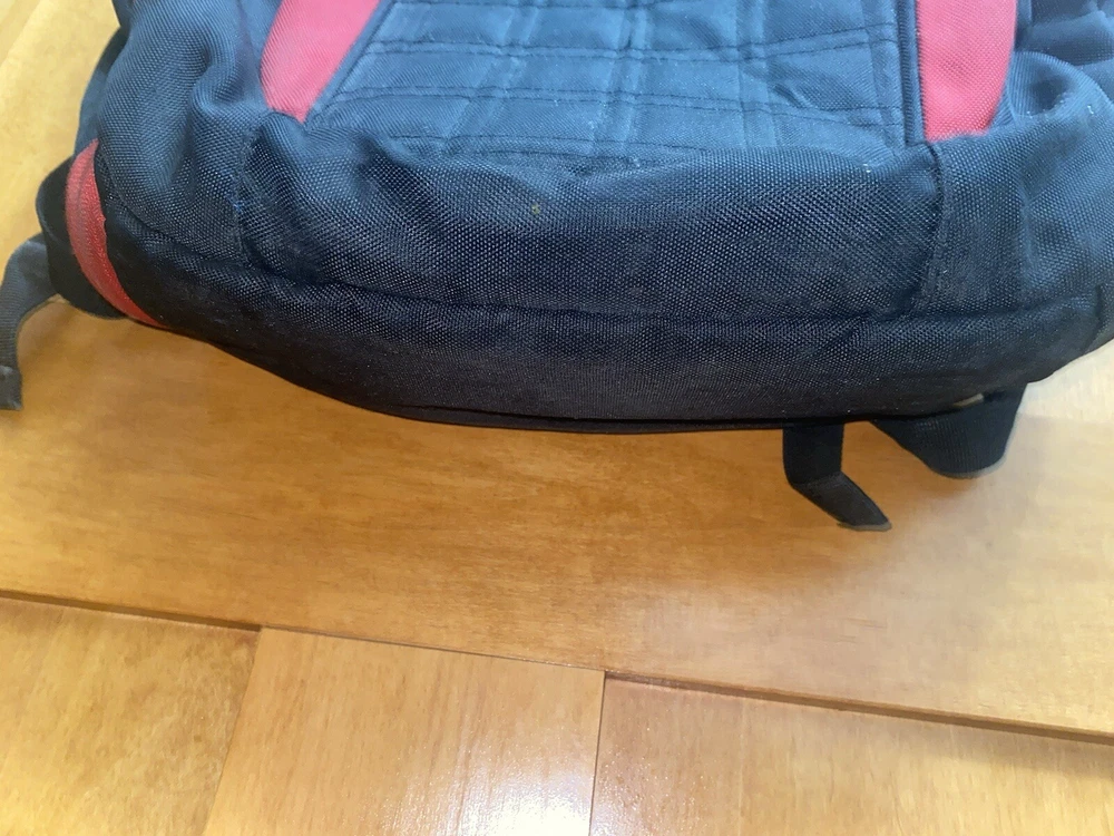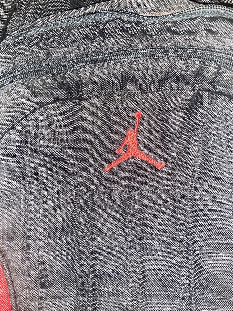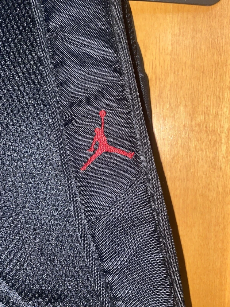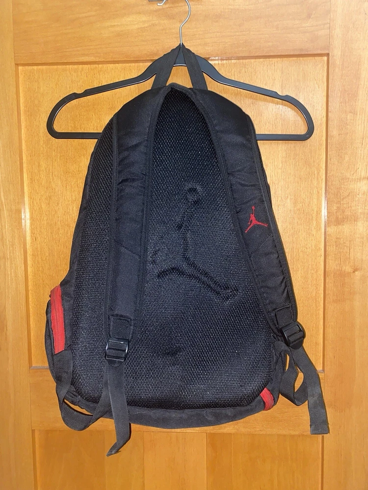 This Nike Jordan Jumpman backpack is the perfect addition to any school outfit. With its sleek black and gym red design, it is both stylish and functional. The backpack features a laptop sleeve for protection, adjustable straps, and multiple pockets for easy organization. Good condition Minor signs of wear Height: 19 inches Length: 13 inches Depth: 5 inches Large main compartment laptop sleeve-Impressive and sporty Two side zipper closure compartments Top medisafe pocket zipper closure Additional zipper closure compartment "organization pockets" Adjustable shoulder straps padded Can be a unisex backpack 100% polyester Smoke-free home Made of durable polyester, this backpack is sure to last throughout the school year. It has a medium size of 13 inches in width, 19 inches in height, and 5 inches in depth, providing enough space for all of your school supplies. The backpack also has a solid pattern, hook and loop, and zip closures for easy access. Get ready for school with this Jordan backpack and make a statement.