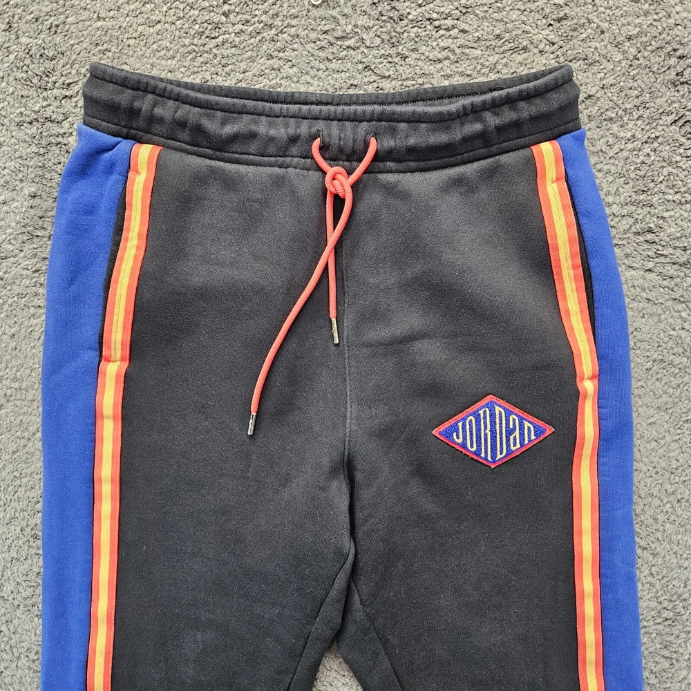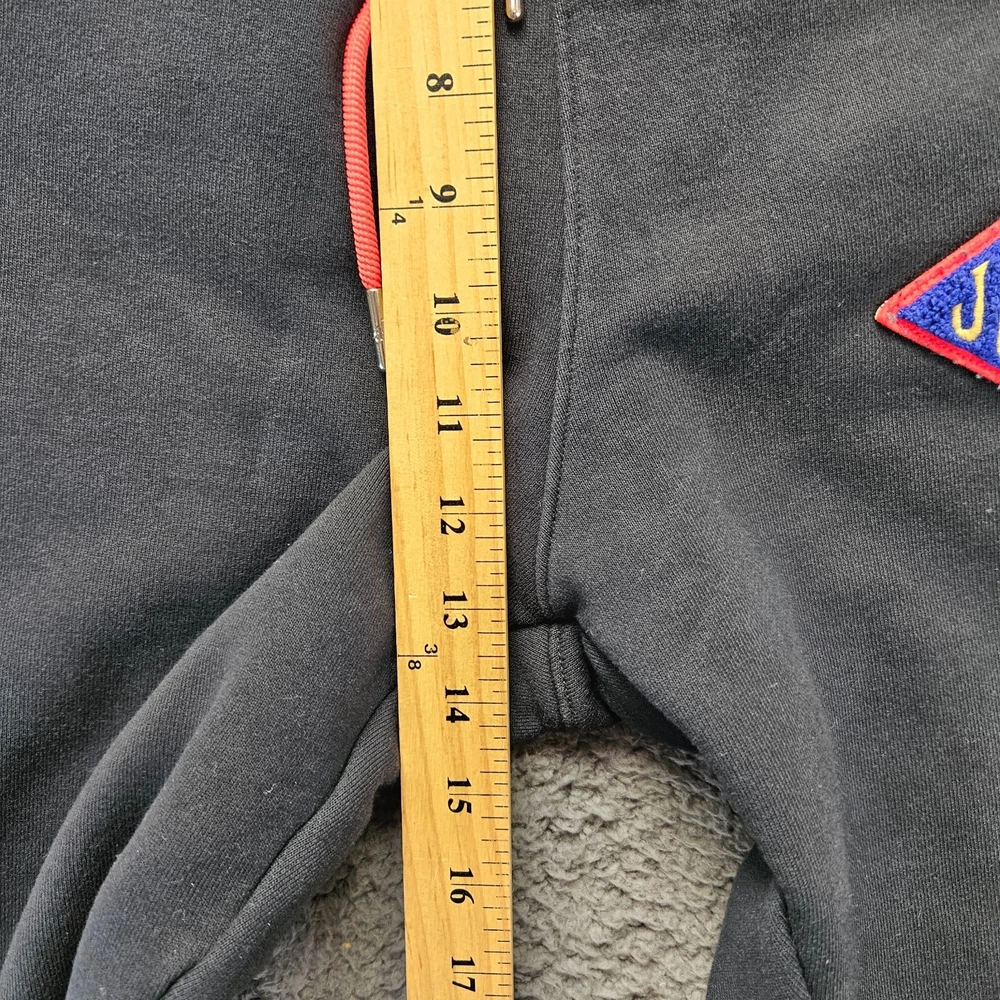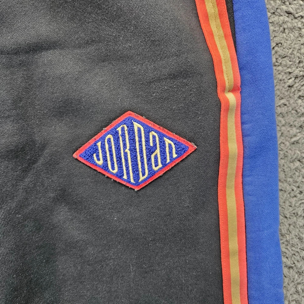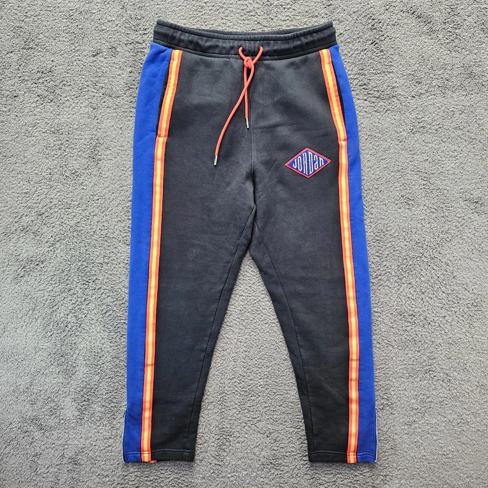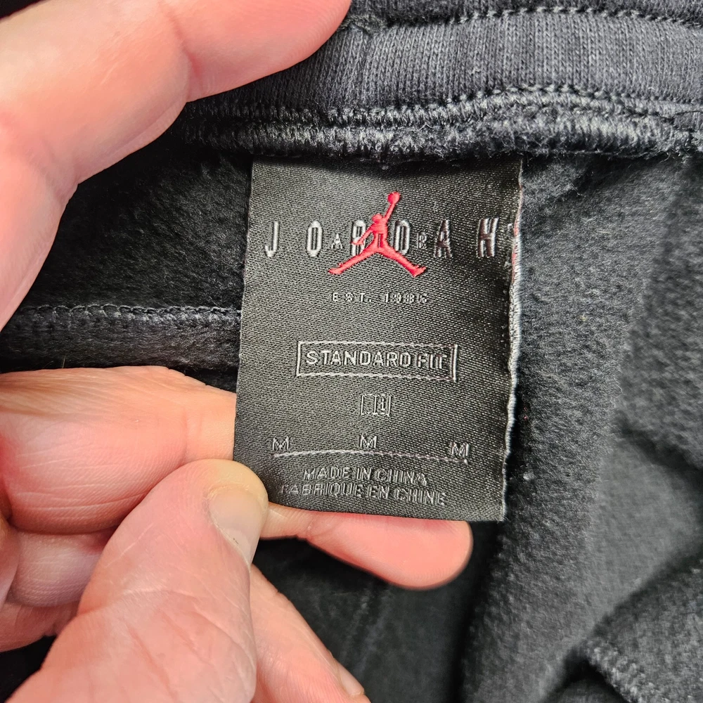 Handmade: No Performance/Activity: Gym & Training, Running & Jogging, Walking Country/Region of Manufacture: China Type: Pants Leg Style: Straight Fit: Regular Personalize: No Features: Comfort, Heavyweight Theme: Logo, Sports Material: 82% Cotton, 18% Polyester Product Line: Air Jordan Size Type: Regular Brand: Jordan Inseam: 27 in Department: Men Color: Black Fabric Type: Fleece UPC: Does not apply Pattern: Striped gtin13: Does not apply Season: Fall, Spring, Summer, Winter Waist Size: 30 in Garment Care: Machine Washable Occasion: Activewear, Casual Size: M Closure: Drawstring Style: Sweatpants