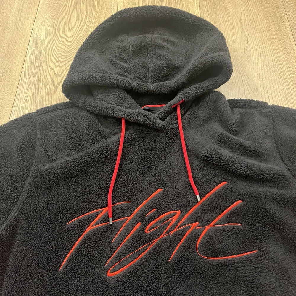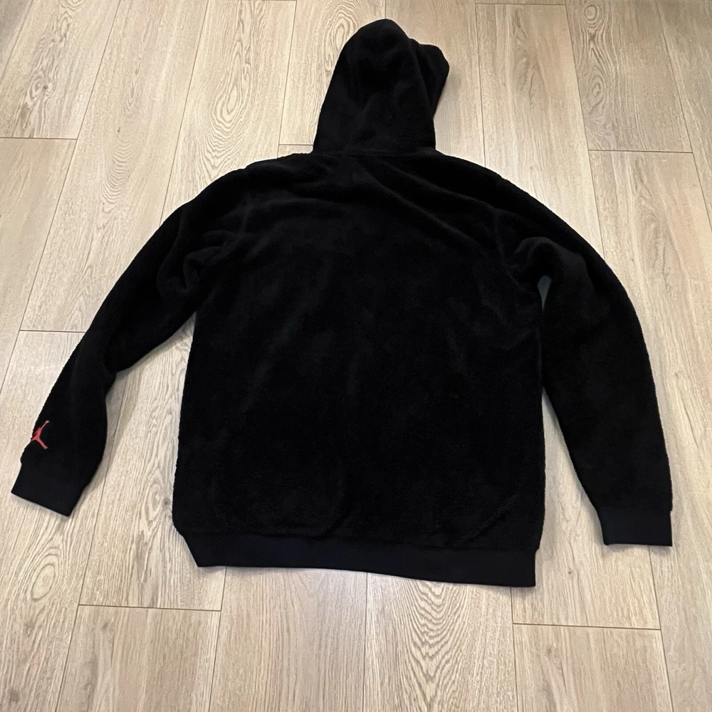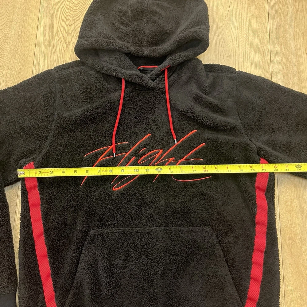 Elevate your activewear game with this Nike Jordan WINGS OF FLIGHT SHERPA HOODIE AH6250-010 in size M. The hoodie comes in a stylish black and red color combination, with embroidered logo accents adding a touch of personality. The drawstring closure and full zip make it easy to put on and take off, while the lightweight and hooded design make it perfect for gym and training sessions, walking, and basketball games. Made with high-quality materials as described in the product line, this hoodie is not only functional but also comfortable to wear. Its long sleeve design and regular size type make it suitable for men of all body types. The Nike Jordan WINGS OF FLIGHT SHERPA HOODIE AH6250-010 is a must-have addition to your activewear collection.