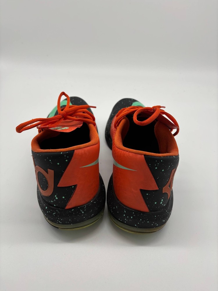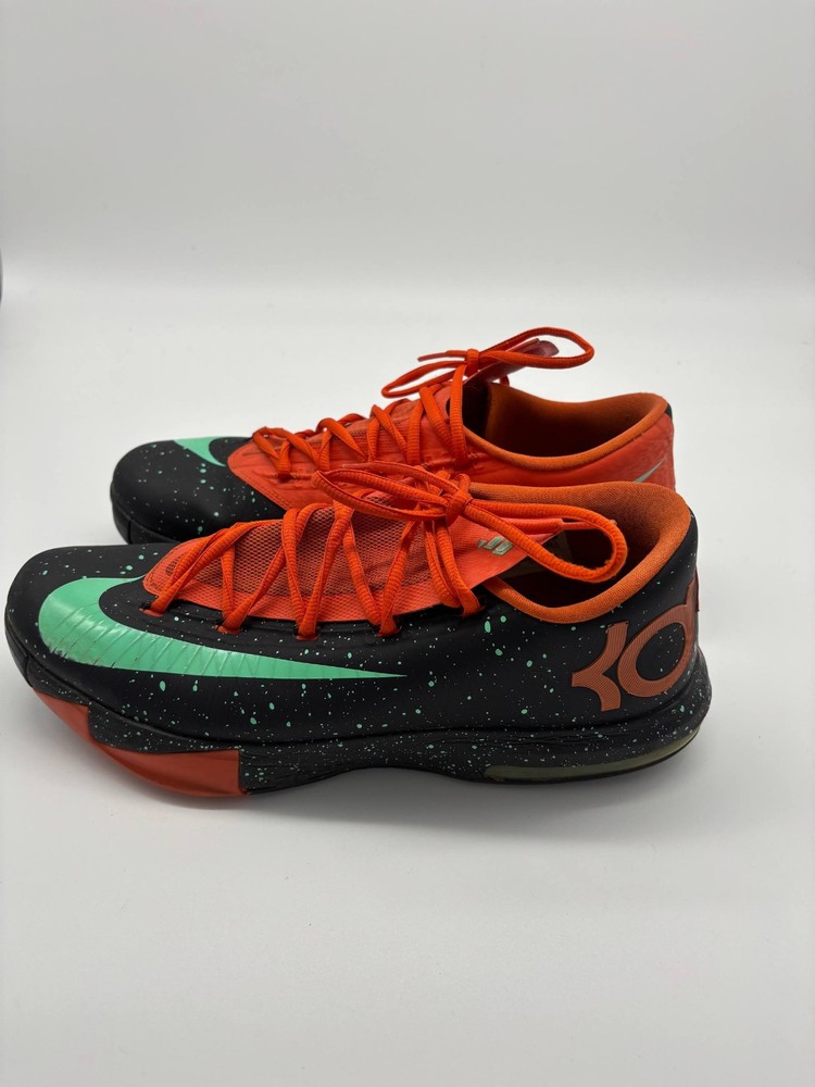 The Nike KD 6 Texas Black Green Glow Urban Orange Shoes in Men's Size 11.5 (599424-002) are a stylish and versatile sneaker designed for various athletic activities. These shoes feature a slip-on lace-up closure for easy wear, a cushioned and lightweight design for comfort, and a rubber outsole for durability. With a vibrant orange color and a nod to Kevin Durant's character, these Nike KD 6 shoes are perfect for activities like basketball, running, training, and more. The modern and athletic design with a touch of retro style makes them a standout choice for those looking for a blend of performance and fashion.