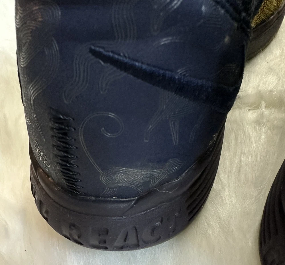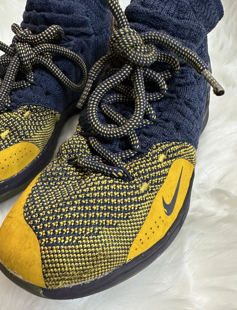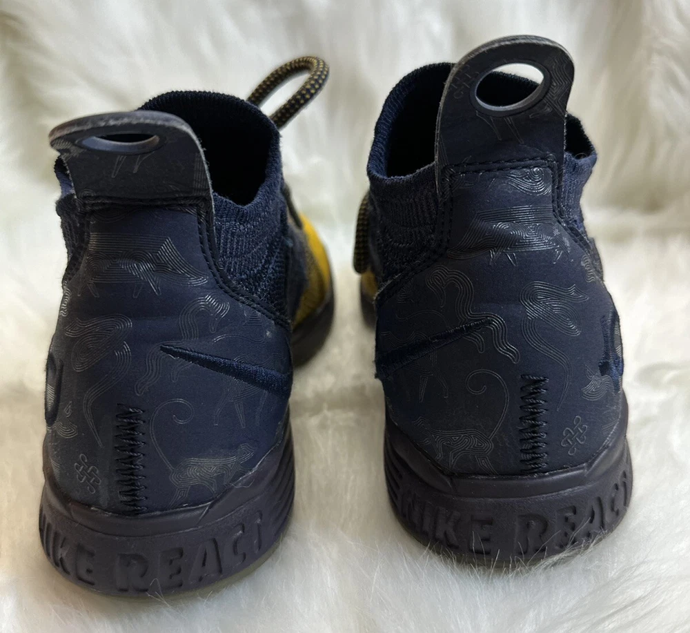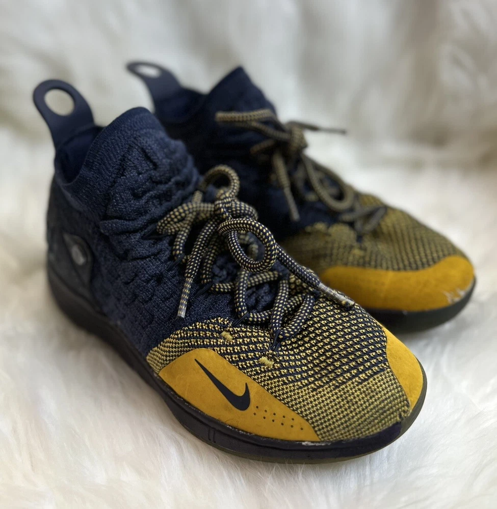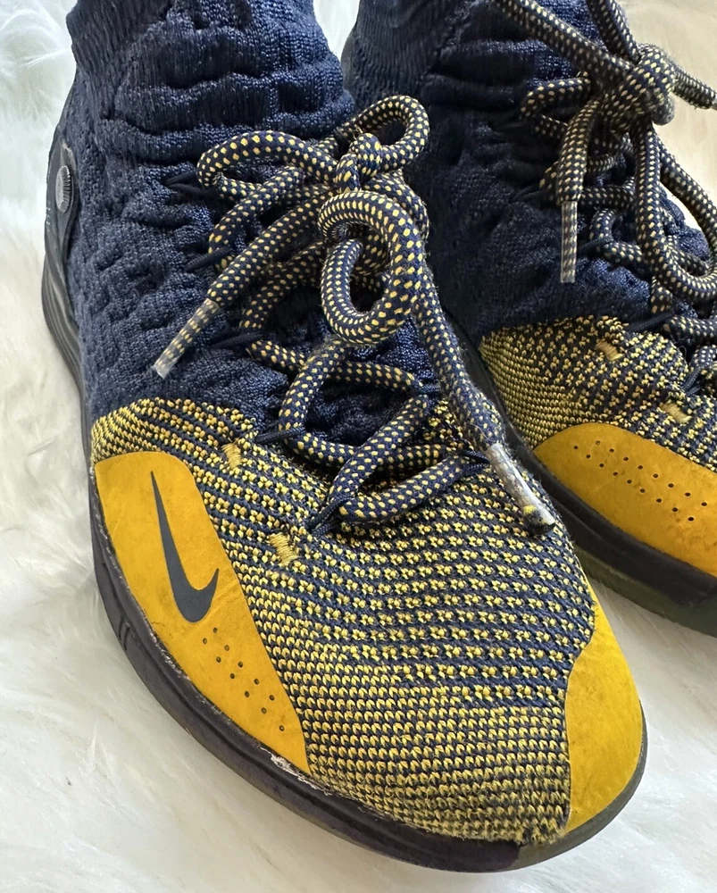 The Nike KD Kevin Durant 11 in size 5Y features a multicolor design inspired by the Chinese Zodiac, with blue and yellow hues creating a vibrant and eye-catching look. These athletic shoes are designed for boys and have a round toe shape with a lace-up closure for a secure fit. Crafted with a synthetic upper material, they offer a comfortable and durable wear for various activities, specifically suited for baseball. The Nike brand guarantees quality and performance, making these shoes a stylish and functional choice for young athletes. Pre-owned, please view photos for exact item condition Cleaned and Laundered Does not come with original box