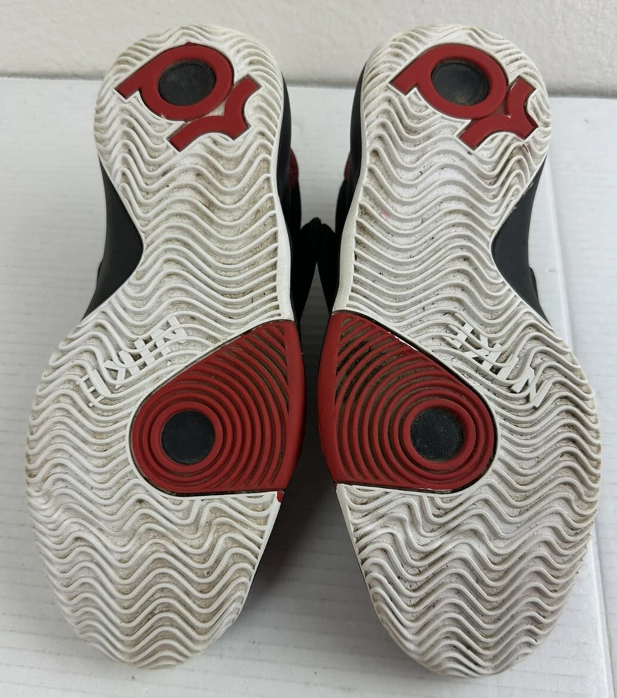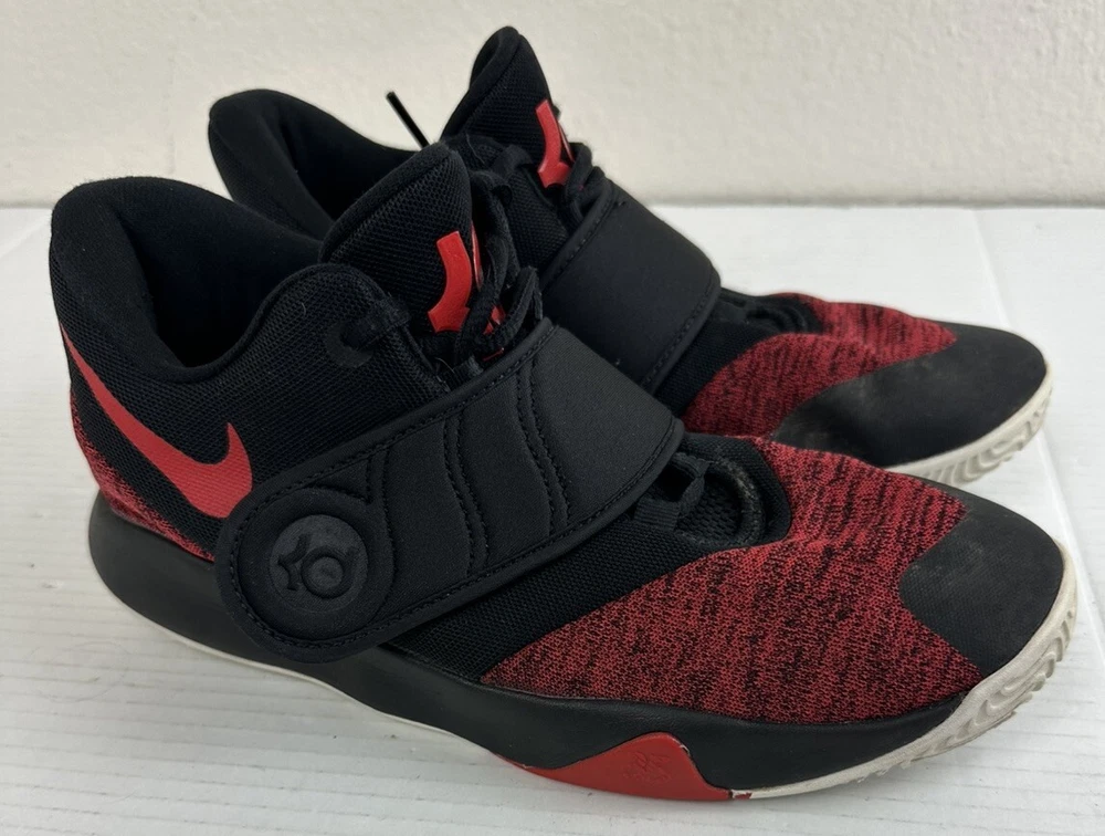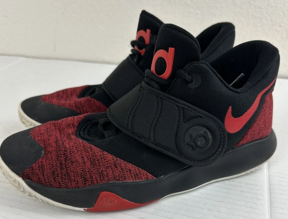 This is a pre-on pair of KD shoes with some stains and scuffs. This is a pair of Nike KD Trey 5 VI Low Bred Basketball Shoes Size 7Y Please see all pictures for conditions since he’s a preowned and have some scuffs