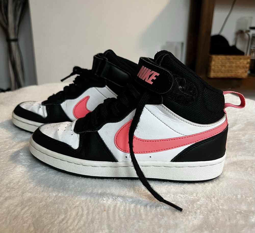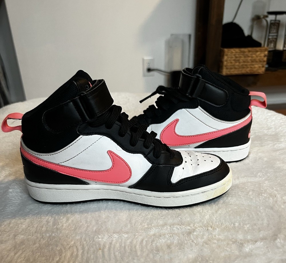 Nike Kids Black and White Sneakers with Pink Accents 4