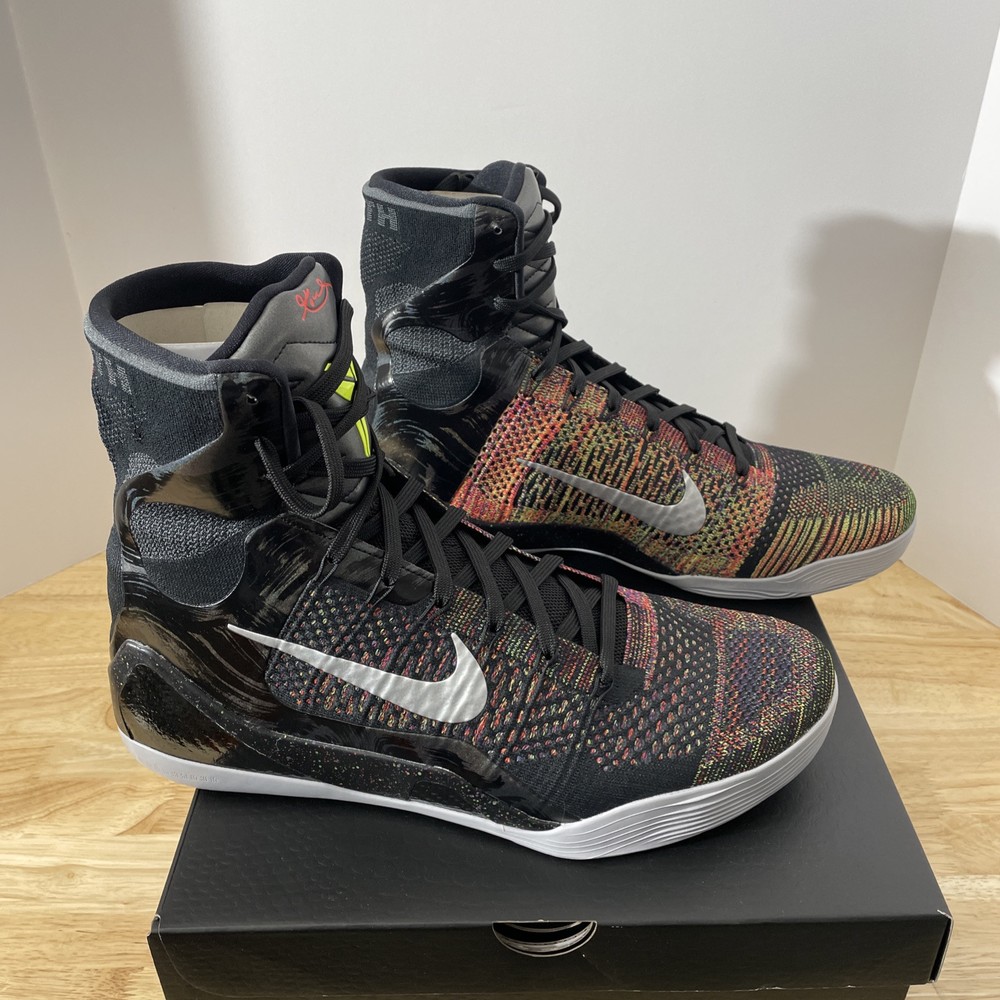 This is a Nike Kobe 9 Elite Protro 2025 Masterpiece sneaker in size 14 for men. The shoe features a black colorway with a FlyKnit upper material, part of the Nike Kobe product line. It is an athletic type of shoe with a futuristic design expected to be released in 2025.