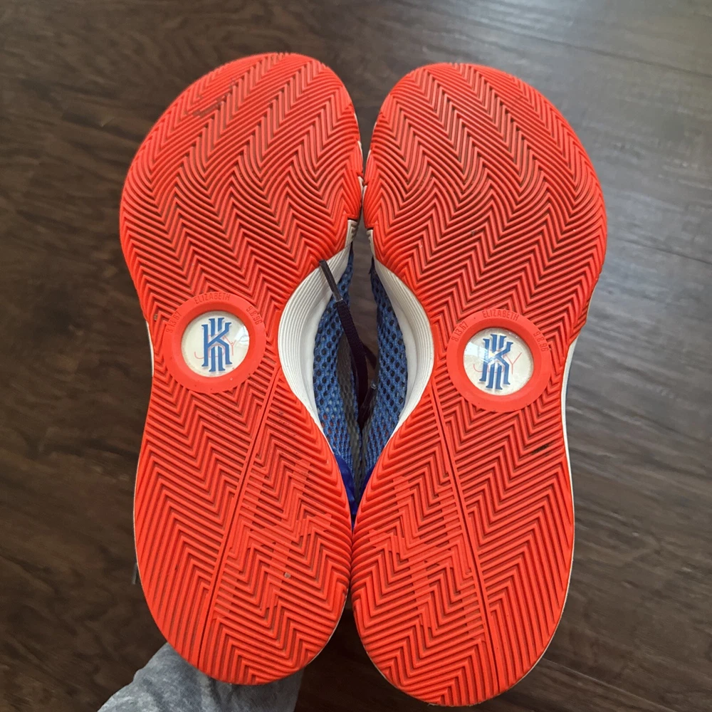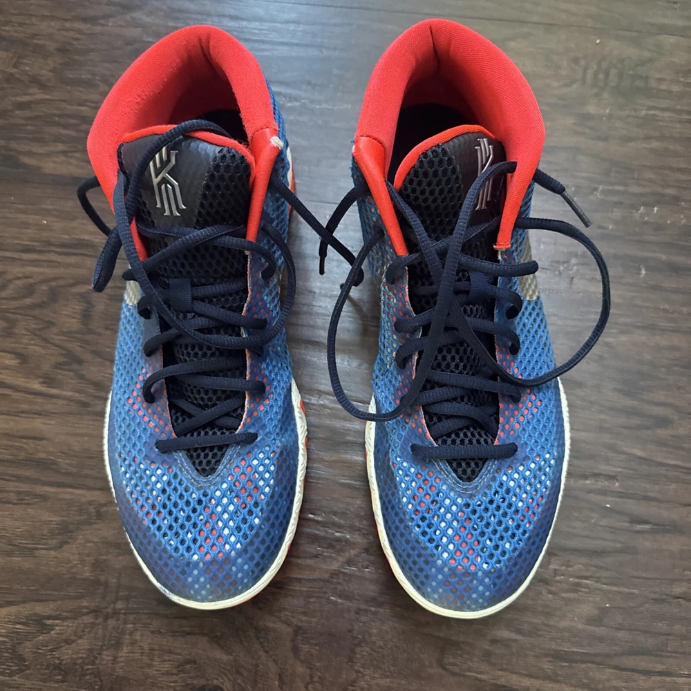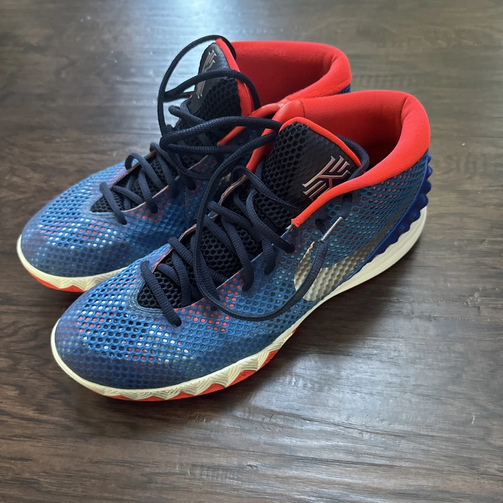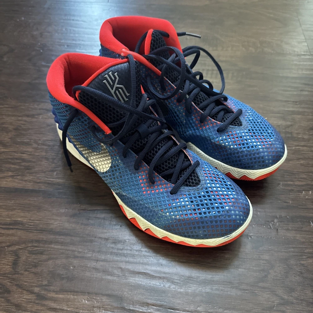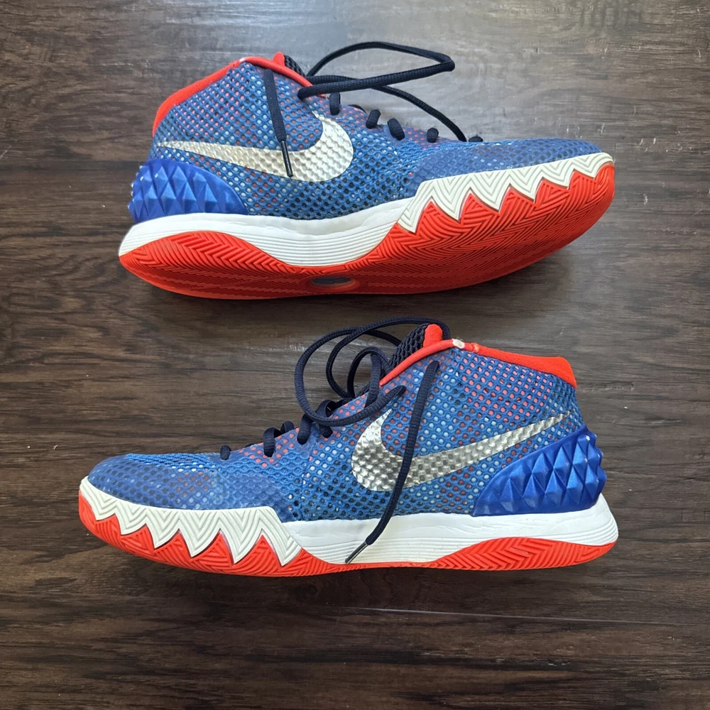 Elevate your game with these Nike Kyrie 1 sneakers. Designed for basketball, these shoes provide comfort and performance with their cushioned, lightweight, and slip-resistant features. The lace-up closure ensures a secure fit while the breathable lining material keeps your feet cool and comfortable. These mid-top sneakers are perfect for any season, whether it's winter, summer, fall, or spring. With their geometric pattern and USA, colorful, outdoor, athleisure, retro, and sports themes, these shoes are sure to make a statement. They are perfect for gym and training, track and field, walking, weightlifting, school, boxing, volleyball, cross-training, CrossFit, basketball, bodybuilding, and running and jogging.