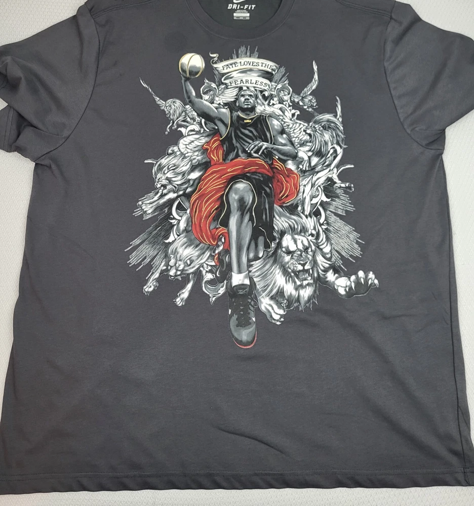 Nike Lebron James Shirt Mens 3XL Gray Dri-Fit Fate Loves The Fearless Graphic No holes No Stains