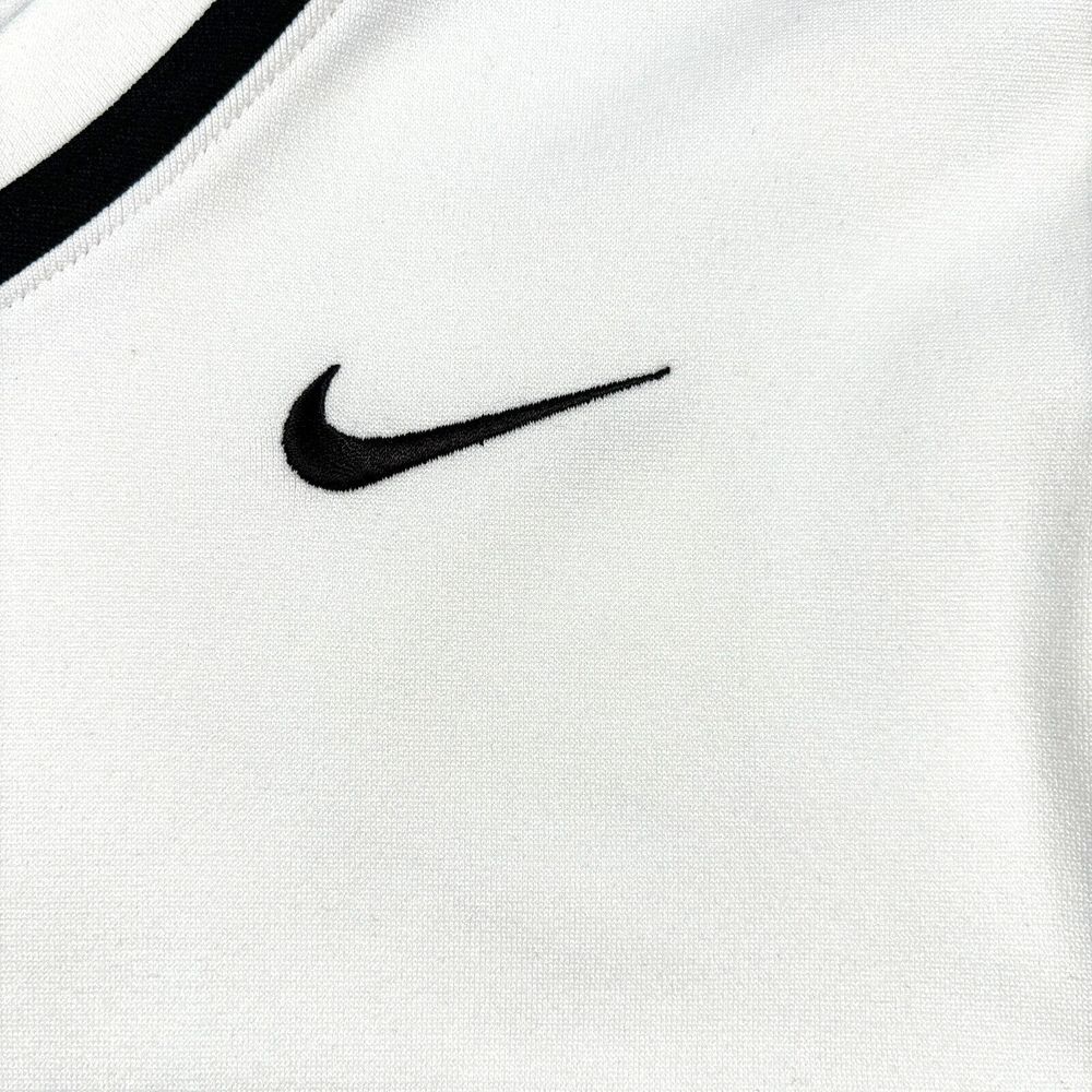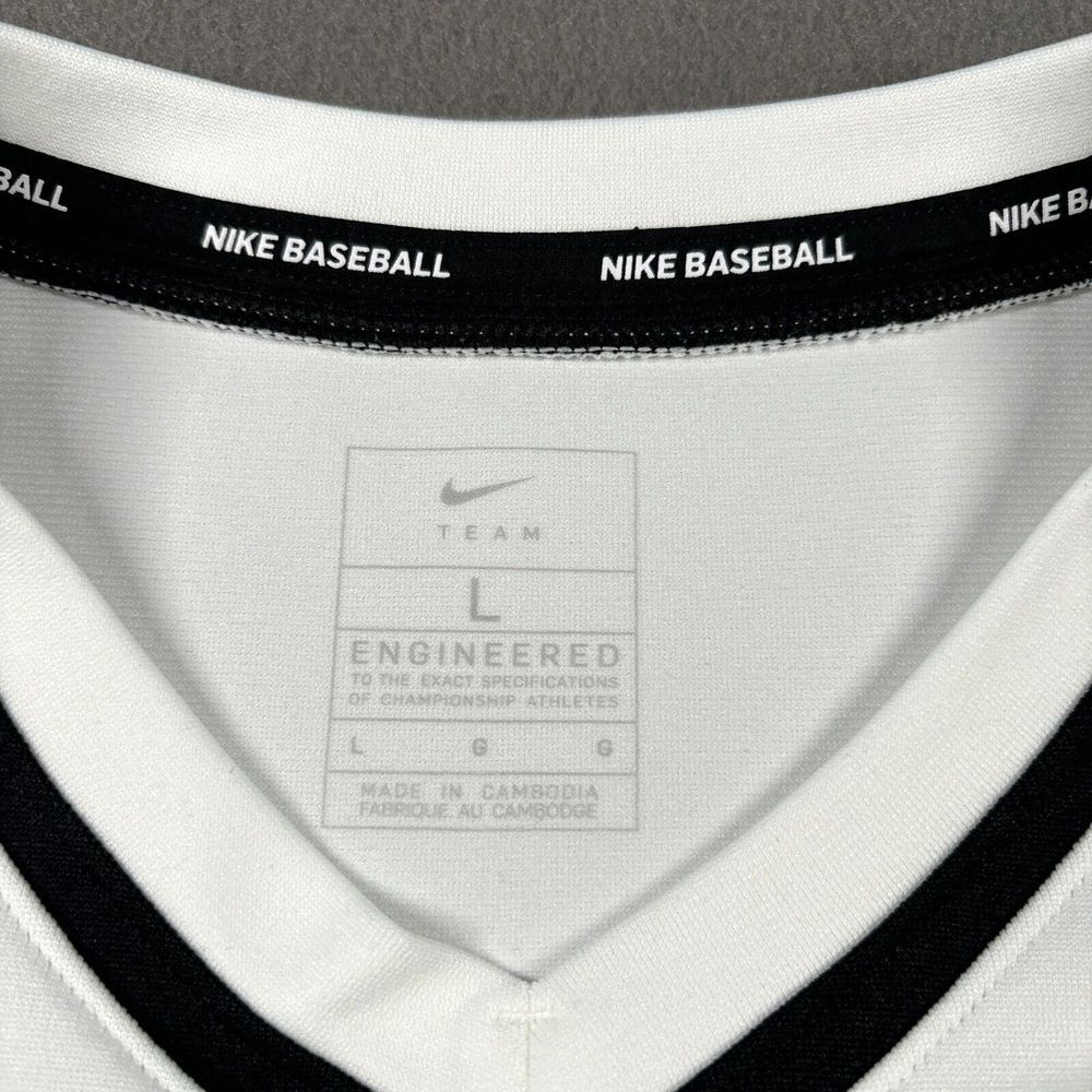 Pattern: Solid Closure: Pullover Country/Region of Manufacture: Cambodia Performance/Activity: Gym & Training, Running & Jogging, Baseball, Basketball Character: Baseball, White Type: T-Shirt Color: White Size Type: Regular Department: Men Size: L Material: 100% Polyester Features: Lightweight, Breathable, All Seasons Style: Jersey Fit: Athletic Sleeve Length: Short Sleeve Brand: Nike Product Line: Nike Dri-FIT Neckline: V-Neck Fabric Type: Jersey Vintage: No