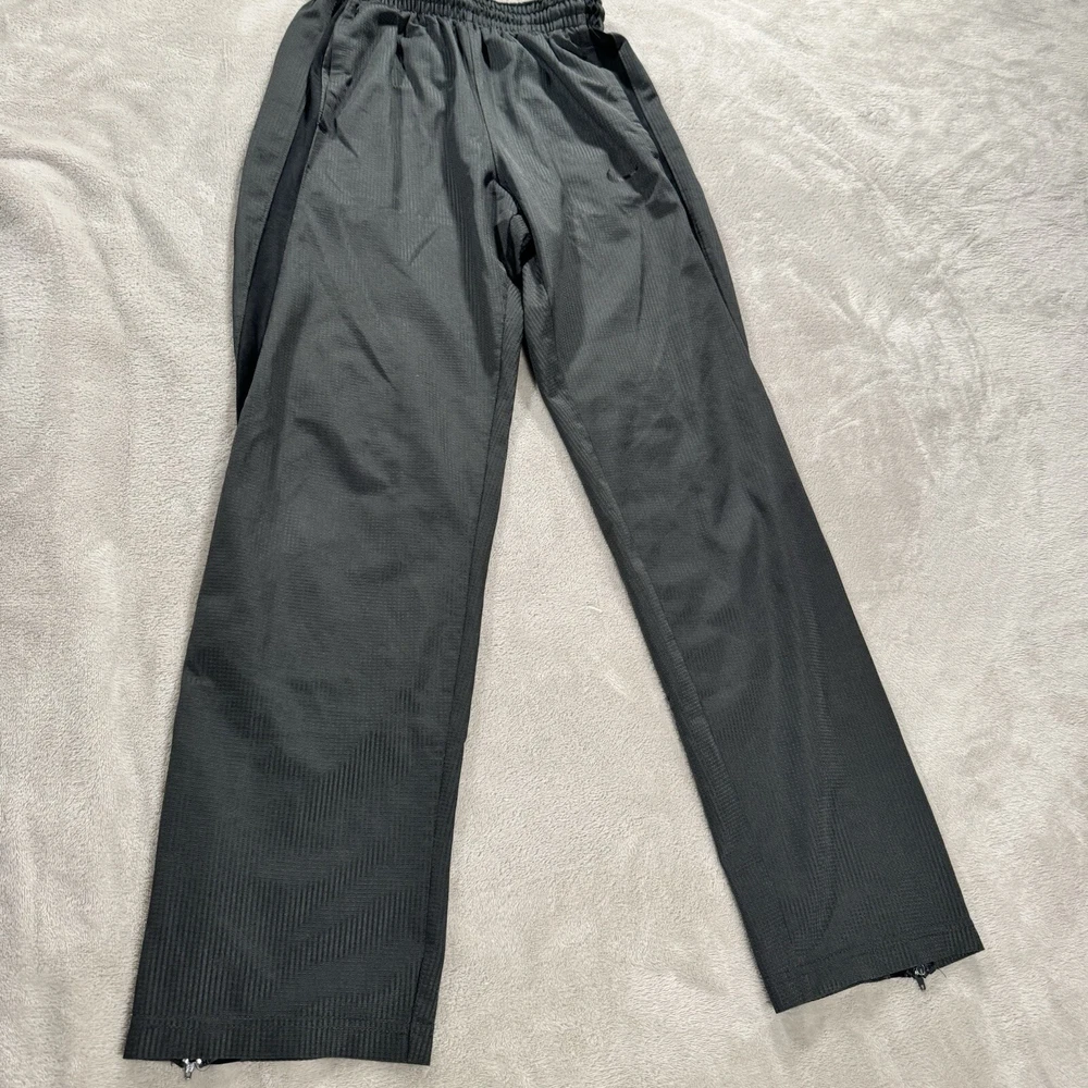 Elevate your activewear collection with the Nike Men's Cash 2 Dri-FIT Ankle Zip Warm-Up Track Pants. Designed for the active man, these pants feature Nike's innovative Dri-FIT technology to keep you comfortable and dry during your workouts. The sleek gray color and classic Nike design make them versatile enough for both the gym and casual wear. Constructed with a drawstring closure for a secure fit, these regular-sized pants have a 29-inch inseam that allows for full range of motion. Whether you're hitting the track or running errands, the Nike Cash 2 track pants in size small are a reliable addition to your wardrobe.