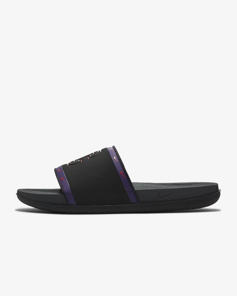 Department: Men Model: College Offcourt Product Line: Nike Slides Occasion: Casual, Travel Outsole Material: Synthetic gtin13: Does not apply Lining Material: Synthetic Color: Black Handmade: No Season: Fall, Spring, Summer Brand: Nike UPC: Does not apply Theme: College Style: Slide Type: Sandal Country/Region of Manufacture: Vietnam Shoe Width: Standard Features: Comfort, Cushioned Closure: Slip On Pattern: Solid US Shoe Size: 8 Insole Material: Synthetic Upper Material: Synthetic