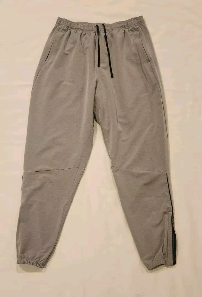 Polyester/Spandex Drawstring Two zip pockets on the side Pocket on the back Zip ankle In good condition except minor stain like showing on the photo!