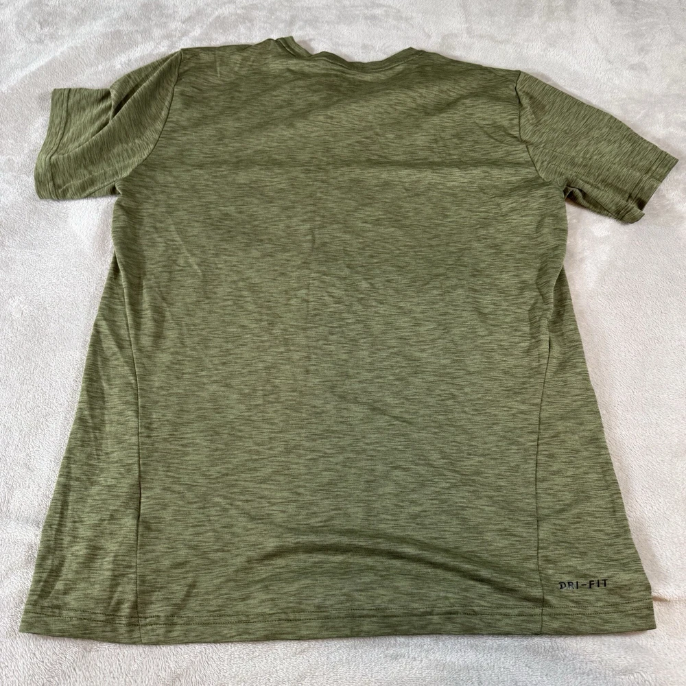 This Nike Men's Dri-Fit Training T-Shirt is a must-have for any athletic man. The shirt is made of 100% polyester knit fabric, making it lightweight, breathable, and easy to care for. Its green color and solid pattern are perfect for any sports occasion, whether it's travel, activewear, or workwear. The shirt features a crew neck and short sleeves, making it suitable for any season, be it summer, fall, or spring. The Nike Dri-Fit model is perfect for gym & training, cross-training, and running & jogging. The shirt is machine washable, ensuring convenient cleaning. It also features a Nike logo accent, adding a touch of style to your sports gear. This T-shirt is a basic yet essential addition to your activewear collection.