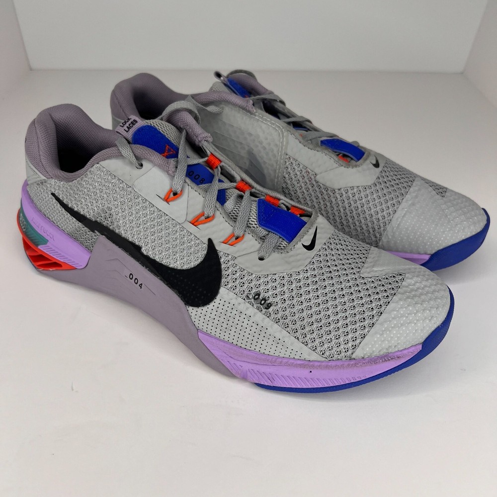Upgrade your training gear with the Nike Metcon 7 sneakers. These athletic shoes feature a low-top shoe shaft style with lace-up closure for a secure fit. The upper material is made of breathable mesh, while the lining material is synthetic and the insole is made of foam for added comfort. The outsole is made of durable rubber with cleat type for better traction during gym and cross-training activities. These shoes are available in UK shoe size 9, US shoe size 10, and EU shoe size 44. The Nike Metcon 7 sneakers come in a solid gray color with violet accents, making them a stylish addition to your workout wardrobe. 100% CUSTOMER SATISFACTION IS OUR GOAL! Our items are always carefully examined for condition, measured if necessary, and photographed in a climate controlled and smoke-free environment. We make every attempt to accurately describe and clearly picture the items we have for sale. Please, ALWAYS view all of the photos. We value your business and our goal is your complete satisfaction. FAST SHIPPING All items are packaged with care and shipped out the same or next business day via USPS, FEDEX, or UPS with tracking numbers so you are always informed. RETURNS We offer a 30-day return policy. All items must be unused and unopened in the condition in which they were received, with original packaging, and all accessories included for return. REVIEWS - CUSTOMER SATISFACTION - COMMUNICATION We aim to make you happy. After you receive your shipment, please leave a positive review . If you have concerns or questions about your order, please contact us so we can resolve the issue. We will do our best to make you satisfied. THANK YOU FOR YOUR BUSINESS!