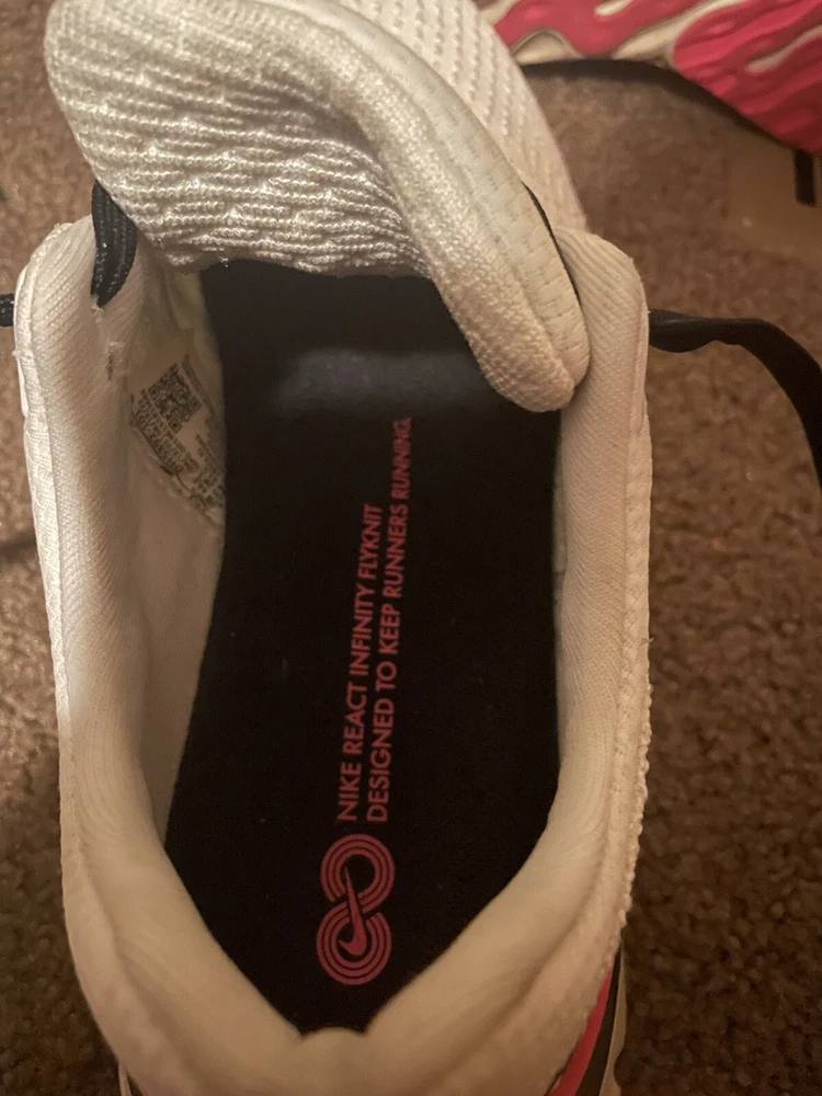 Nike Men's REACT INFINITY FLYKNIT White - Hyper Pink Running Shoes - 10.5