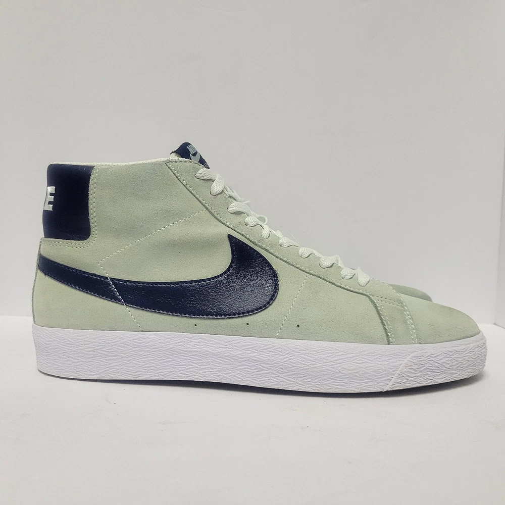 Elevate your sneaker game with these Nike Men's SB Blazer Mid Retro shoes. These sneakers have a solid mint green colorway and a mid-top shoe shaft style. The lace-up closure ensures a secure fit, while the rubber outsole provides comfort and breathability. These athletic shoes are perfect for casual occasions and can be worn in all seasons, including winter, summer, fall, and spring. The Nike SB Blazer Mid Retro sneakers have a standard shoe width and are available in UK size 9 and EU size 44. The upper material is made of suede, and the shoes are not customized. Add these sports-themed sneakers to your collection today!