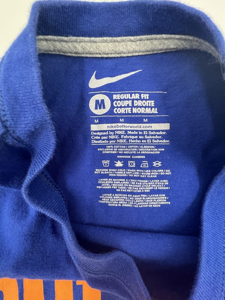 Brand:NikeMaterial:CottonNeckline:Crew NeckSize:MPattern:SolidTheme:ClassicSleeve Length:Short SleeveCharacter:naVintage:NoFeatures:BreathableType:T-ShirtColor:BlueFit:ClassicDepartment:MenCharacter Family:naAccents:LogoSize Type:RegularCountry/Region of Manufacture:El Salvador