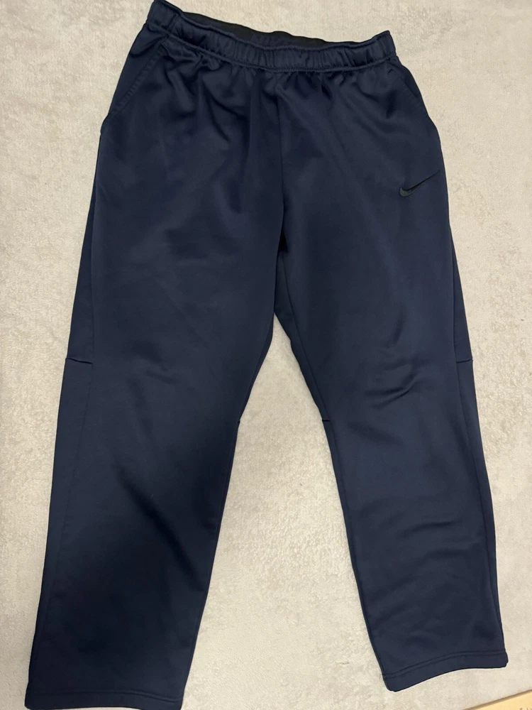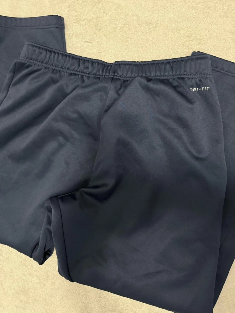 Elevate your activewear game with these Nike sweatpants in size XL. The pants are made of a blended fabric that is both comfortable and machine washable, making them perfect for all seasons. The elastic waist and tapered leg style provide a flattering fit for any athleisure or sports occasion. These brown pants feature a drawstring closure and pockets for added convenience. The Nike Dri-FIT product line ensures that you stay dry and comfortable during your running or other athletic activities. These pants are a solid addition to any activewear collection and are perfect for the modern man.