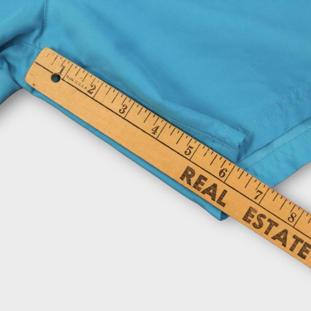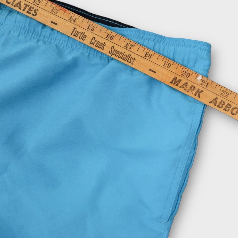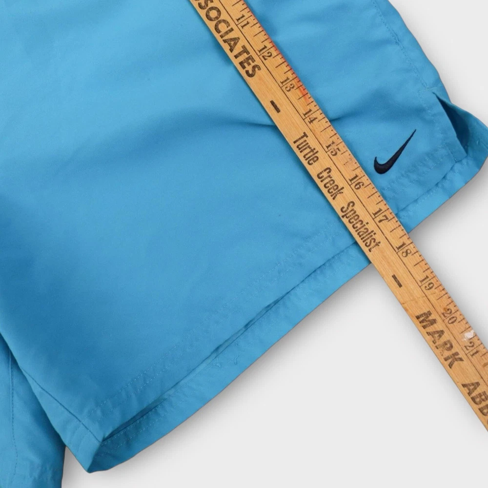 Get ready for a comfortable and stylish day at the beach with these Nike Men's Swim Trunks. These blue trunks are made of lightweight and breathable polyester material with a mesh lining for added comfort. They feature a drawstring and above-the-knee design for a secure and comfortable fit. These trunks also come with built-in briefs, pockets, and the Nike logo for added style. Perfect for a day of swimming and recreational activities, these trunks are machine washable and easy to care for. Don't miss out on this opportunity to add a fashionable and functional piece to your summer wardrobe. Tag Size: Men’s XL Best Fit: * Men: XXL Approximate Flat Measurements: * Waist: 21” * In Seam: 6” Condition: No Noticeable Flaws All items are second hand, many being vintage and may have small imperfections. Anything major is noted.
