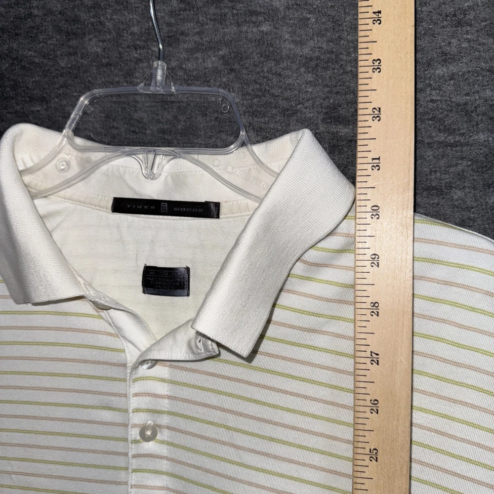 Elevate your golf game with this Nike Mens Tiger Woods Collection Striped Pale Yellow Dri-Fit Golf Polo in size XXL. Designed for comfort and performance, this polo features a collared neckline with a button-down closure, short sleeves, and a knit fabric type. The striped pattern and Tiger Woods logo accents add a touch of style to your golf course attire. Ideal for all seasons, this Nike Dri-Fit polo is perfect for various activities such as gym & training, track & field, rugby, tennis, walking, golf, baseball, basketball, fishing, football, hiking, running & jogging. Made of a blend of polyester and cotton, this regular-fit polo is suitable for men who want to look and feel their best during their favorite sports.